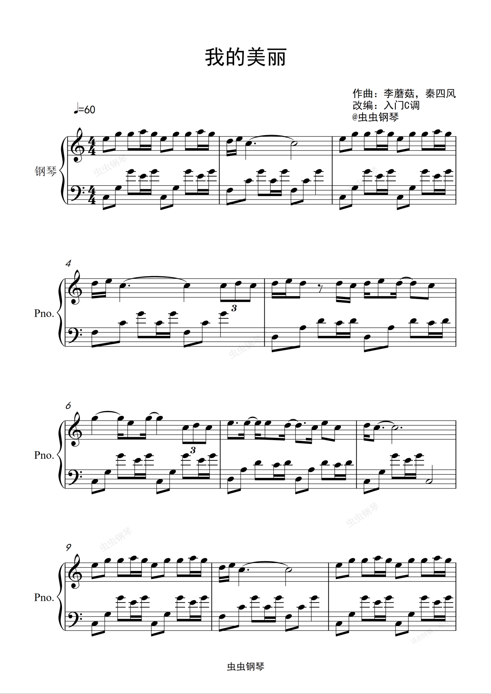 钢琴谱:黄绮珊(小霞) 《我的美丽》入门C调简单版