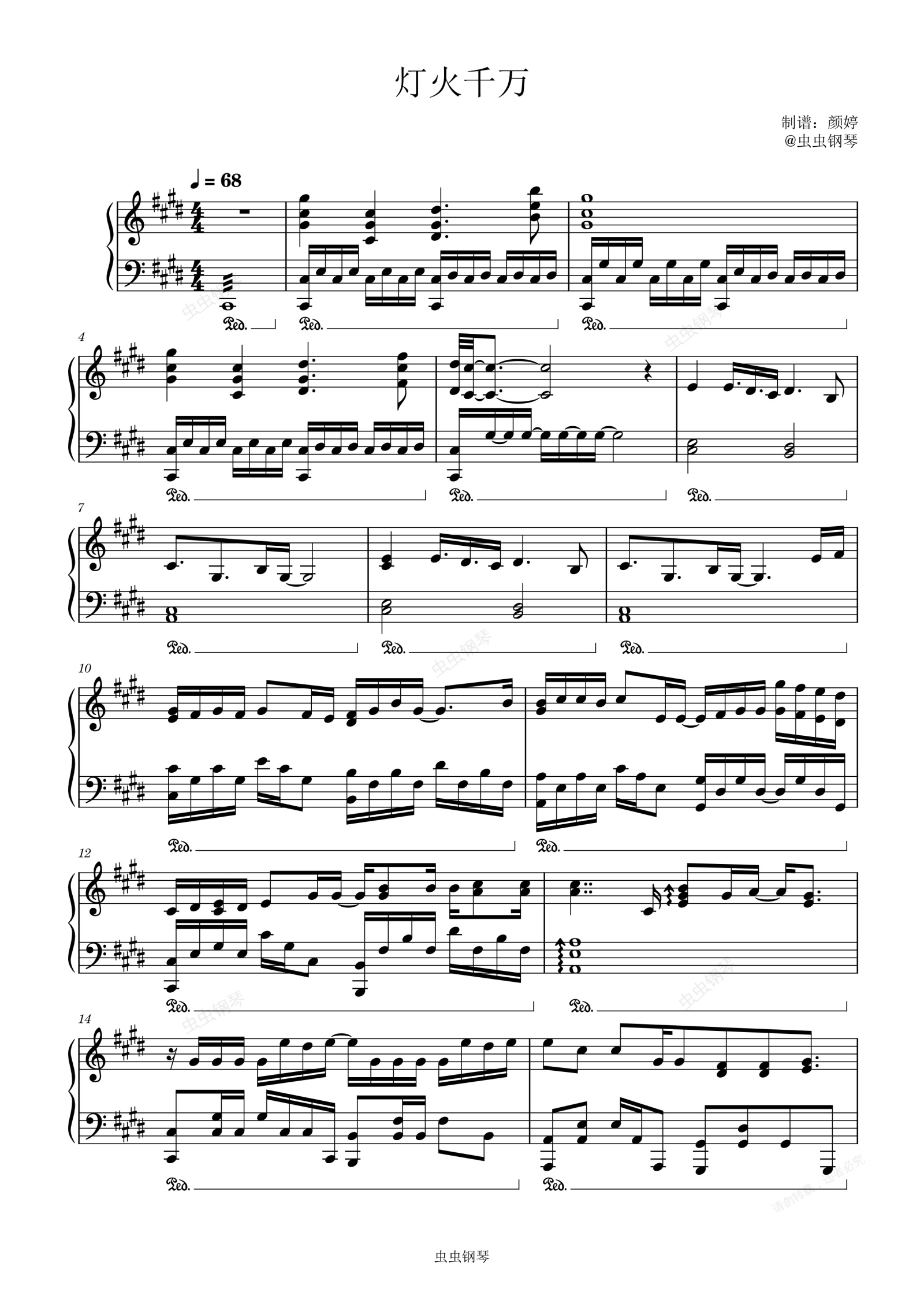 钢琴谱:《灯火千万》————《新神榜杨戬》电影推广曲
