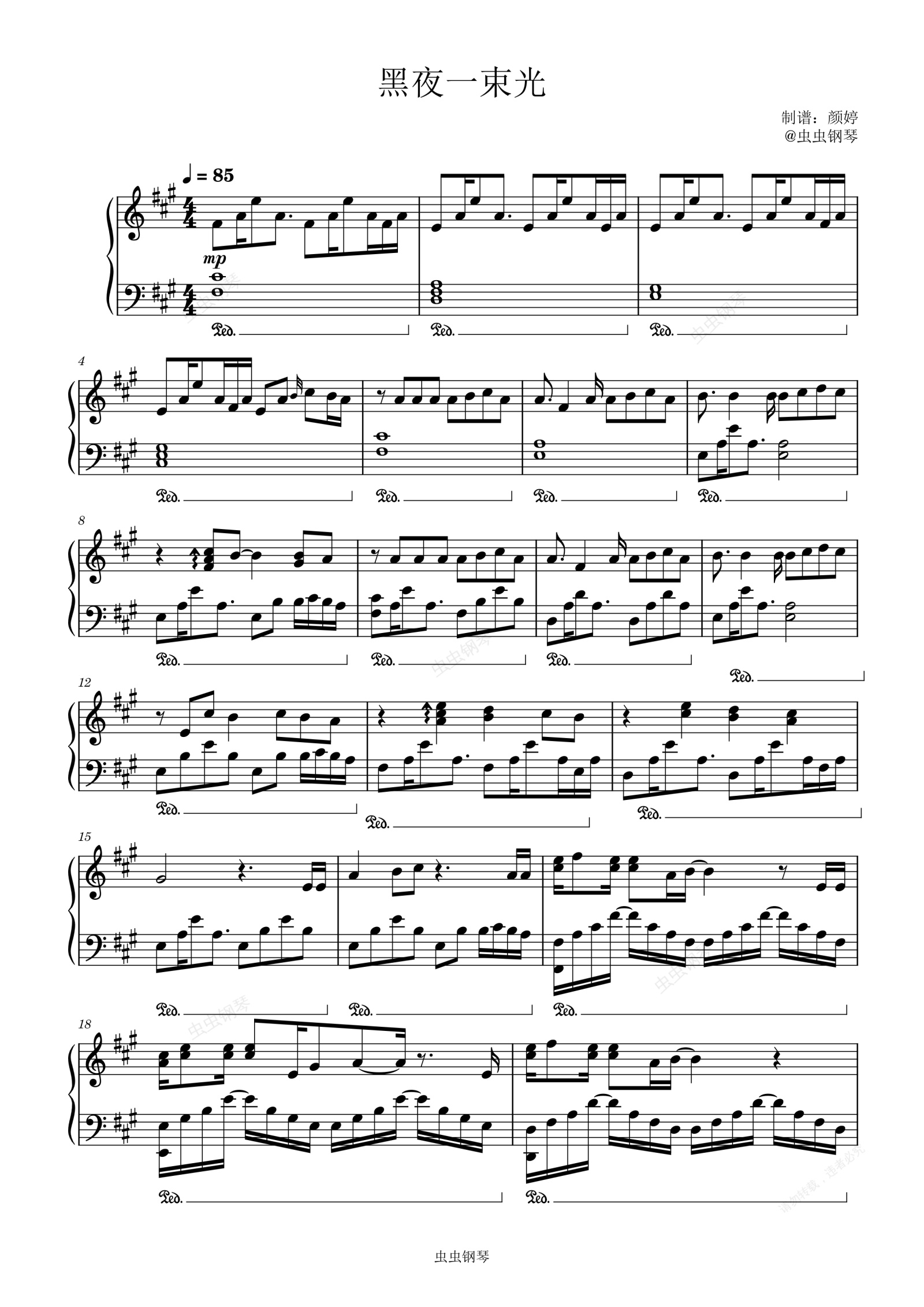 钢琴谱:《黑夜一束光》——-刘宇宁