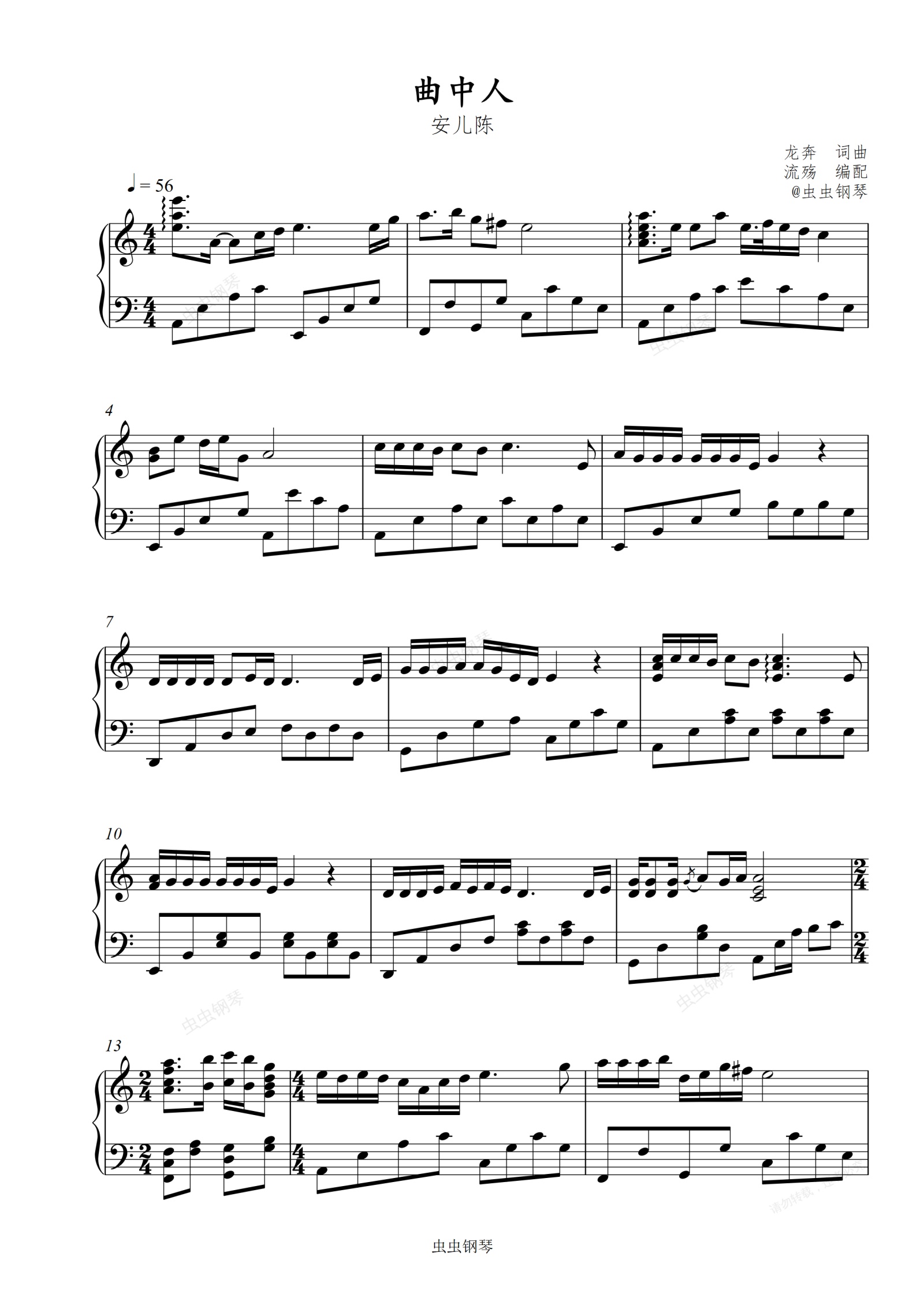 钢琴谱:曲中人(C调版)