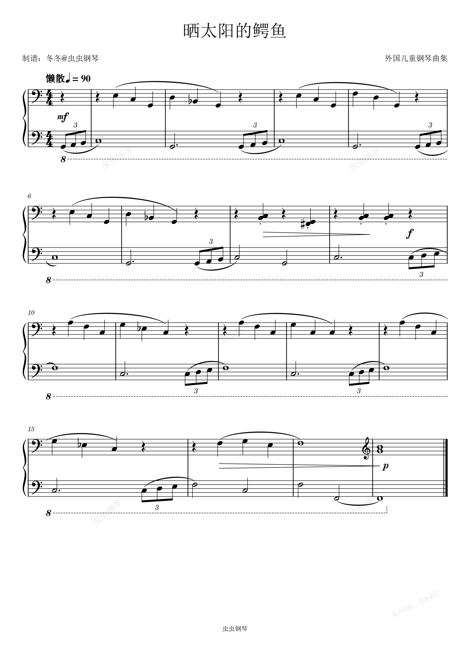 钢琴谱:晒太阳的鳄鱼