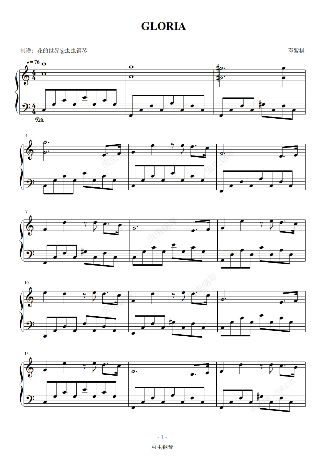 钢琴谱:GLORIA C调简易版 邓紫棋