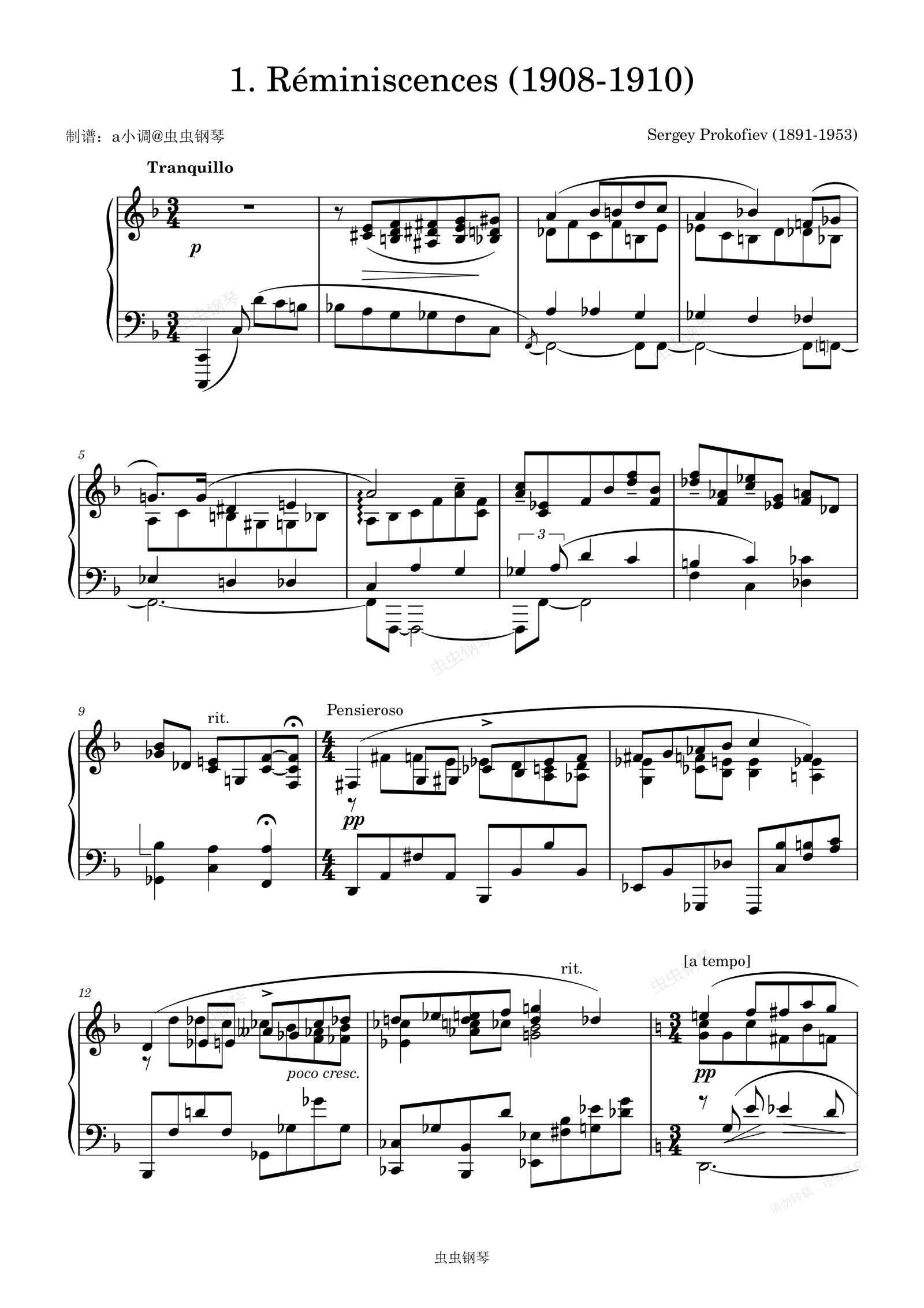 钢琴谱:Réminiscences 普罗科菲耶夫