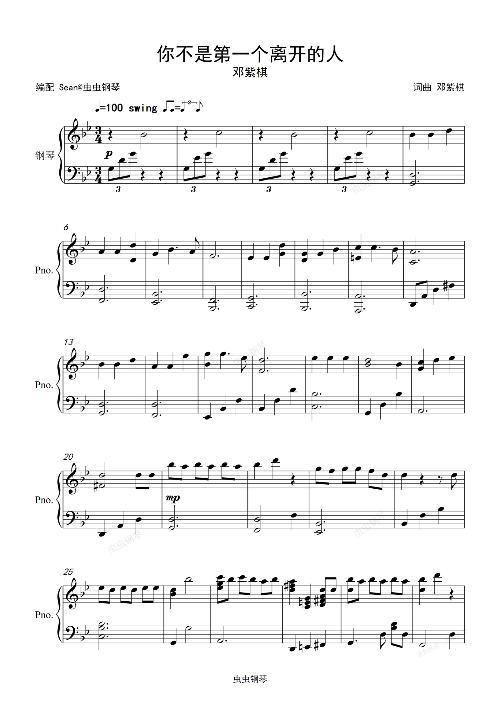钢琴谱:邓紫棋《你不是第一个离开的人》高度还原版-Sean编配