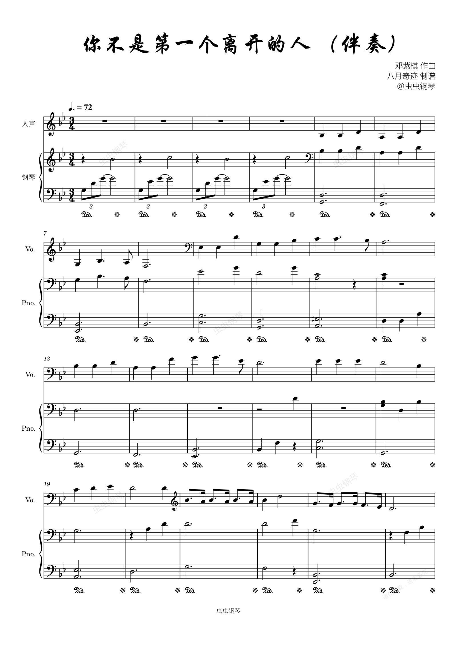 钢琴谱:(弹唱伴奏)你不是第一个离开的人