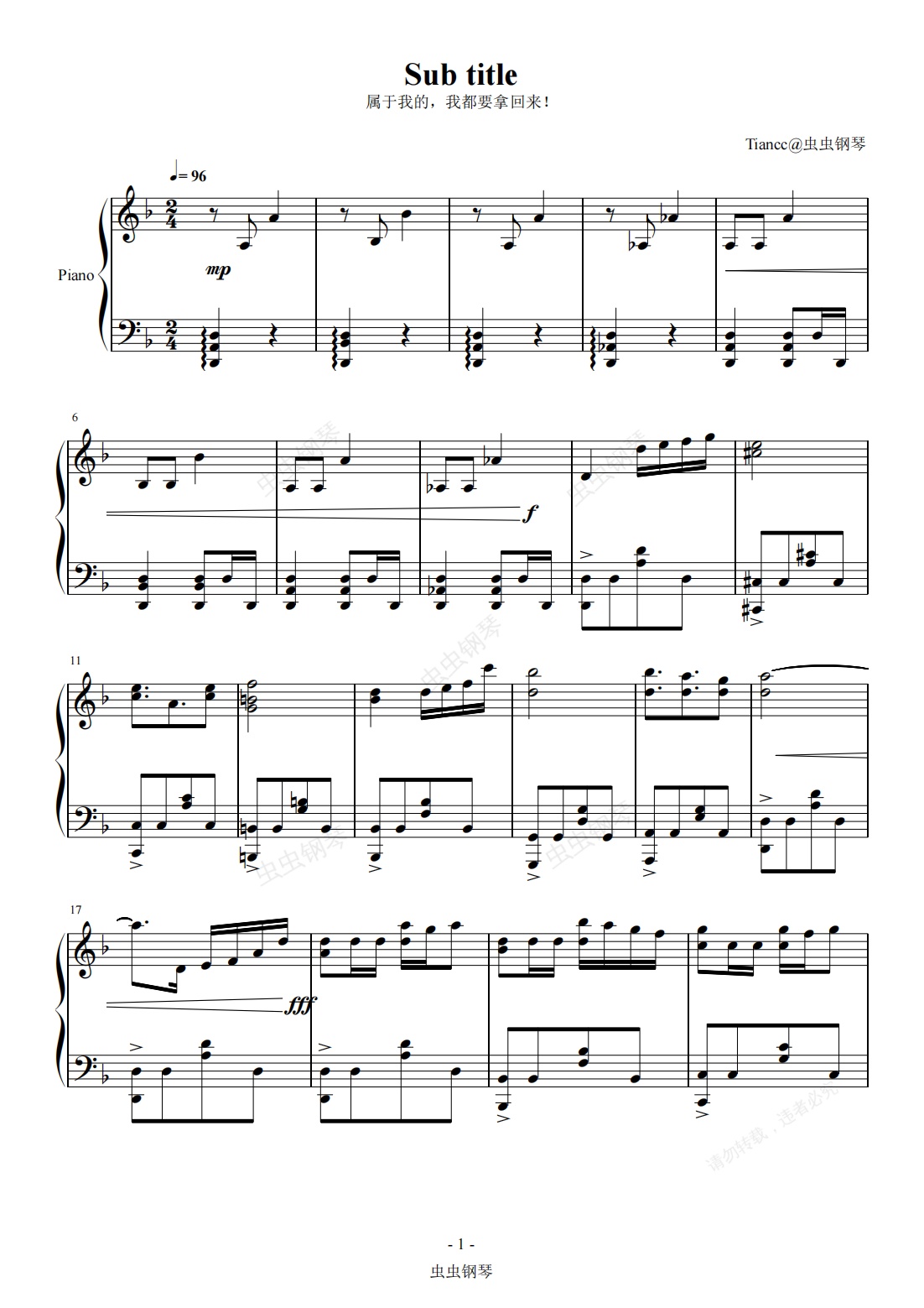 钢琴谱:《Sub Title》回国了,这一次属于我的,我全都要拿回来!