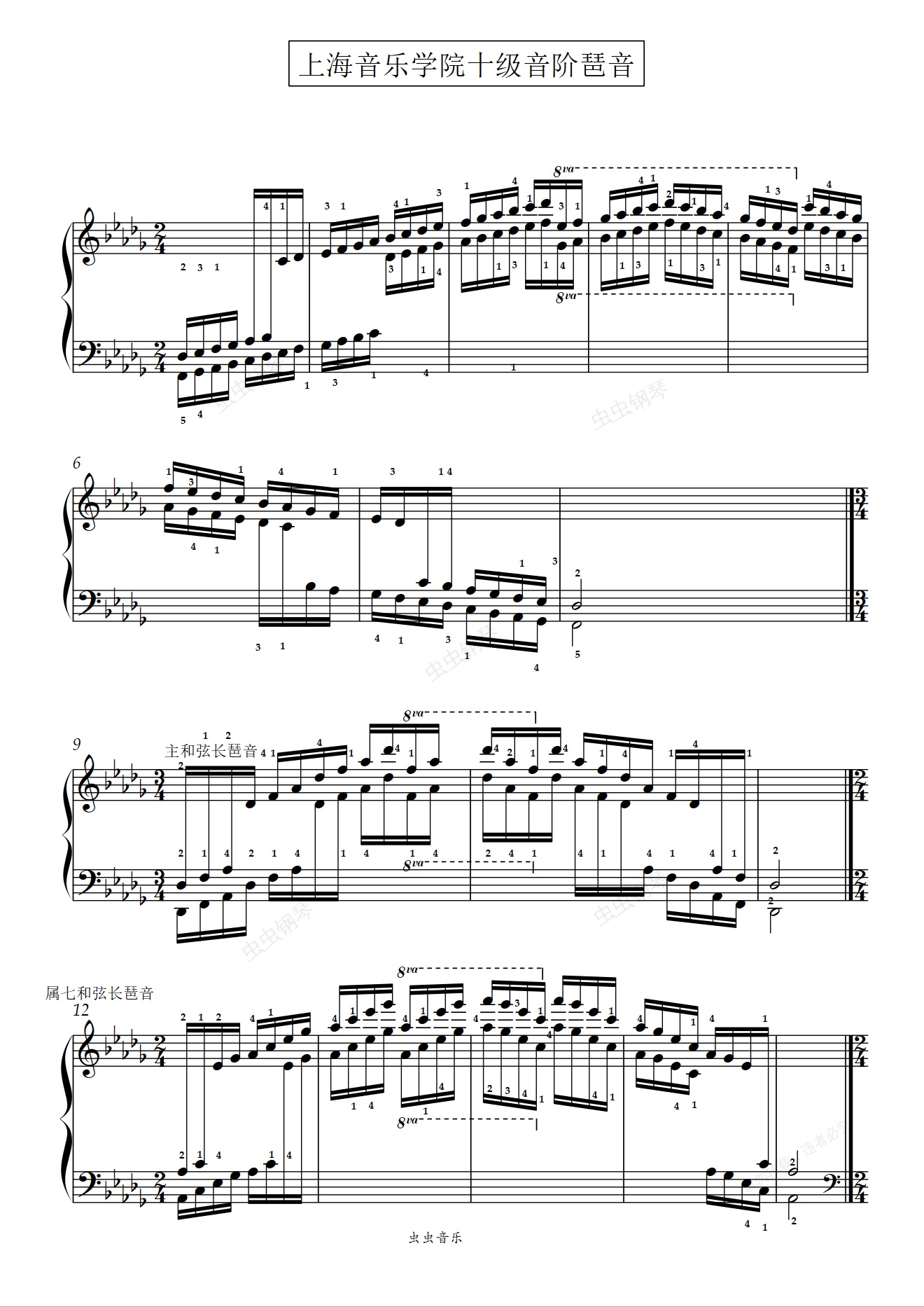 钢琴谱:上海音乐学院考级十级音阶琶音