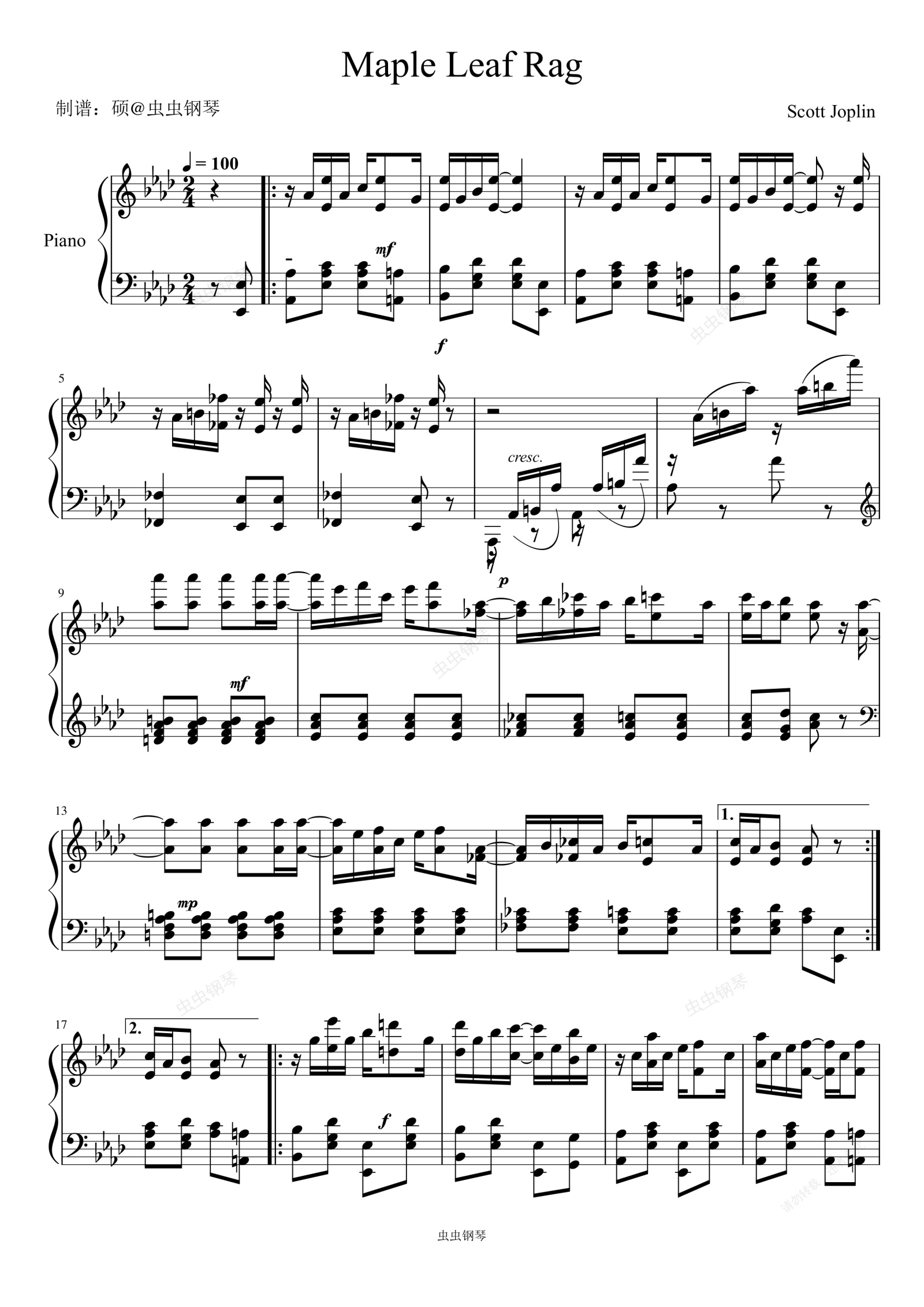 钢琴谱:Maple Leaf Rag - Scott Joplin