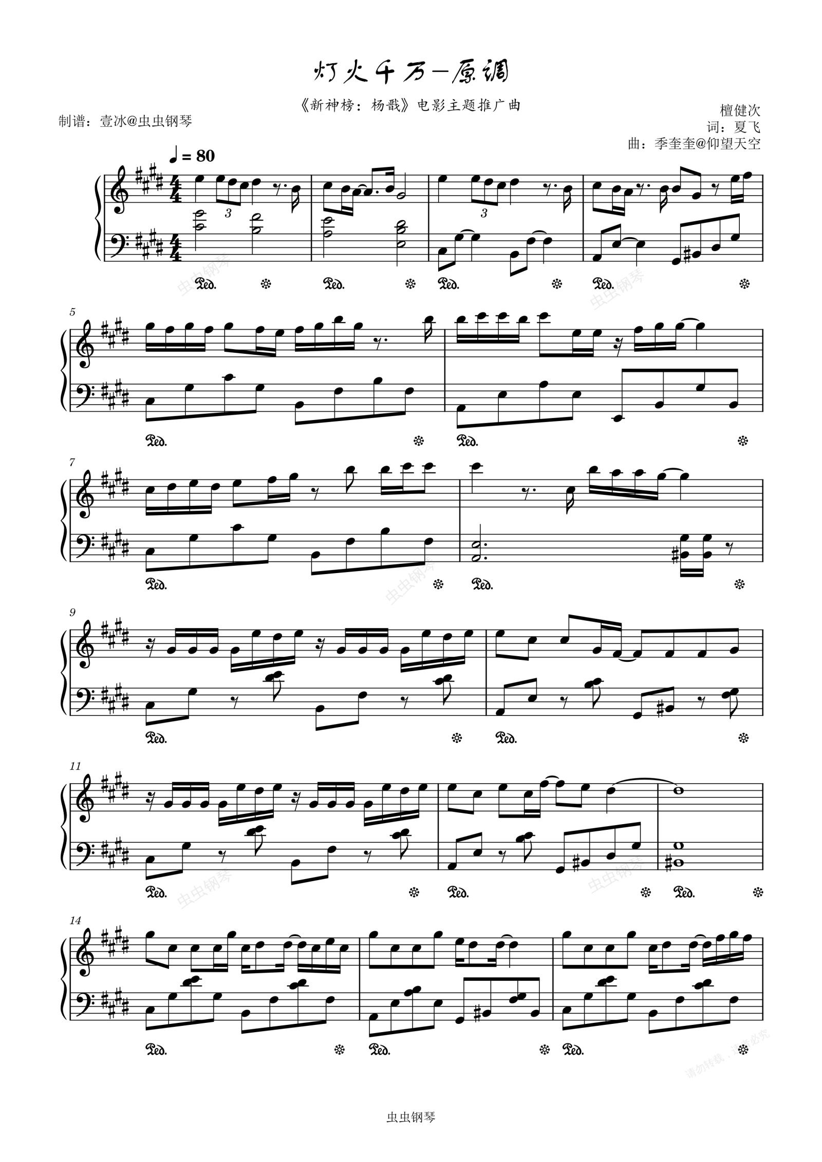 钢琴谱:灯火千万 //《新神榜:杨戬》电影主题推广曲-檀健次 原调