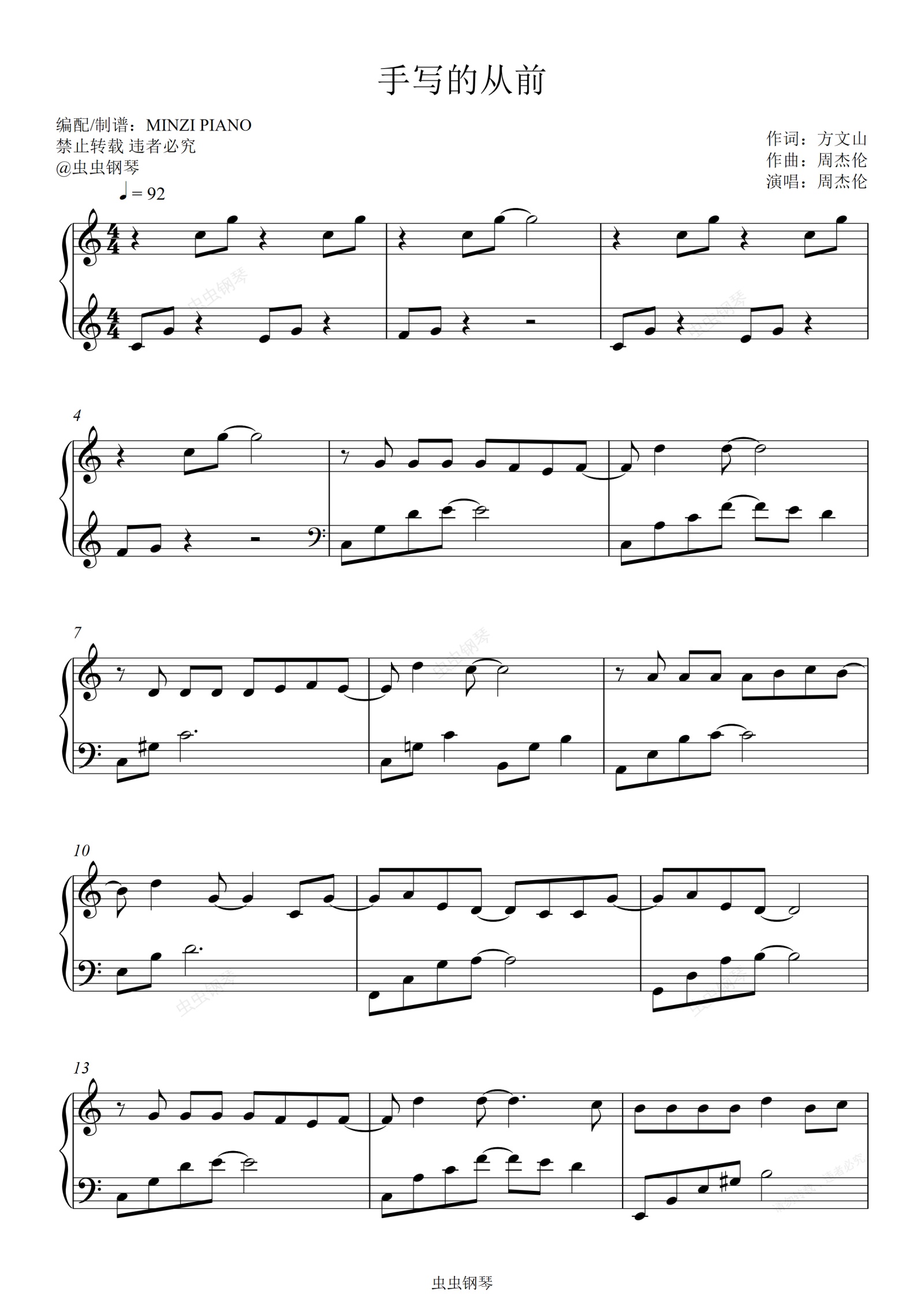 钢琴谱:周杰伦《手写的从前》好听易弹
