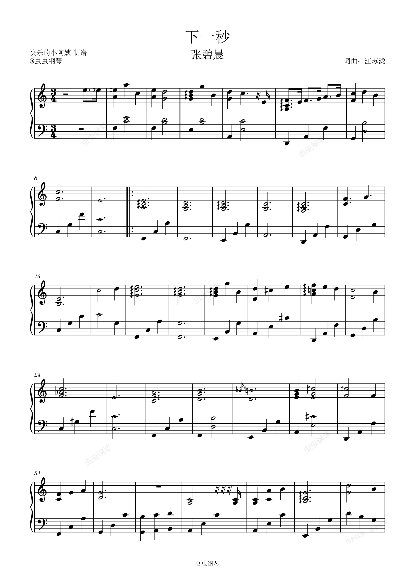 钢琴谱:下一秒(伴奏版) - 张碧晨