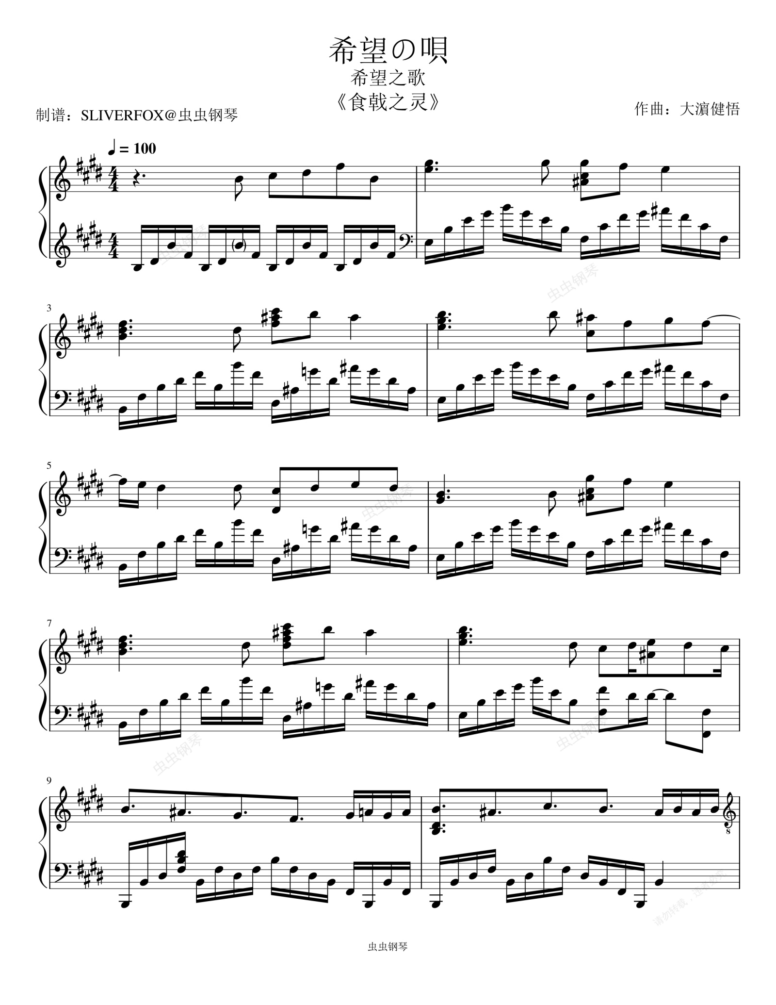 钢琴谱:《希望の唄》(食戟之灵)片头曲 希望之歌 独奏