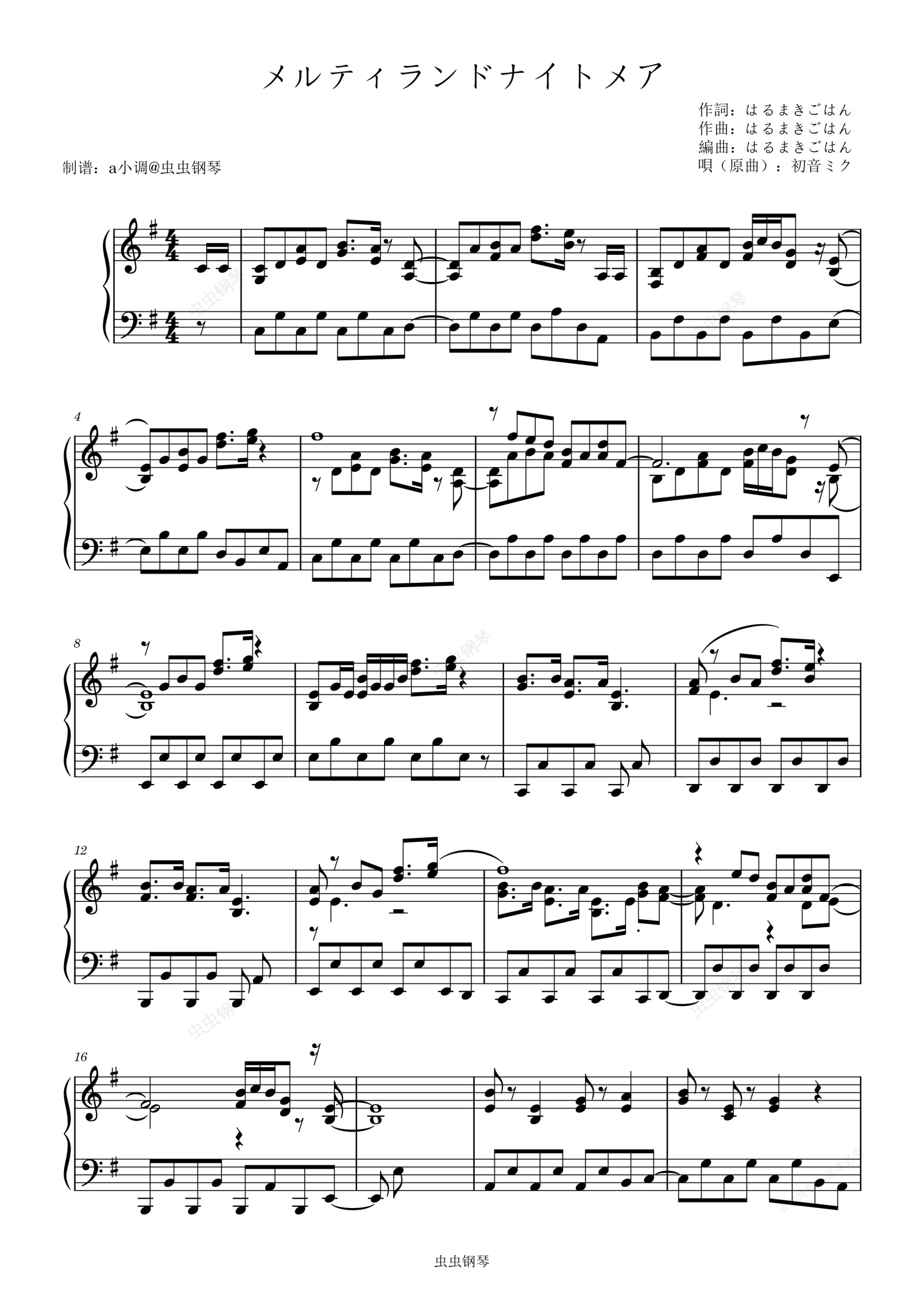 钢琴谱:メルティランドナイトメア - はるまきごはん