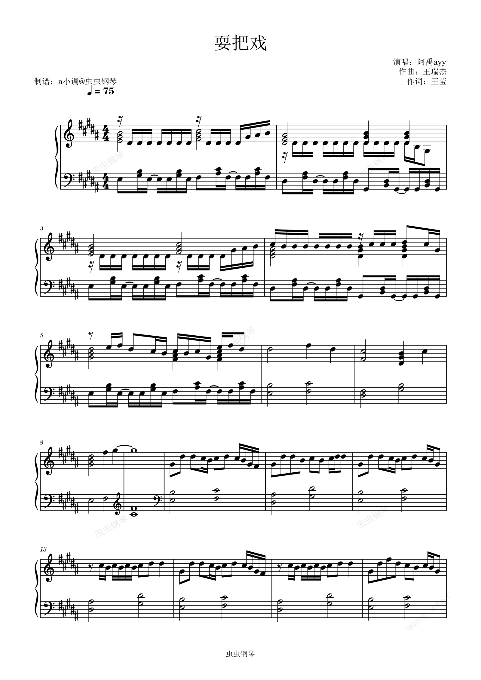 钢琴谱:耍把戏 阿禹ayy