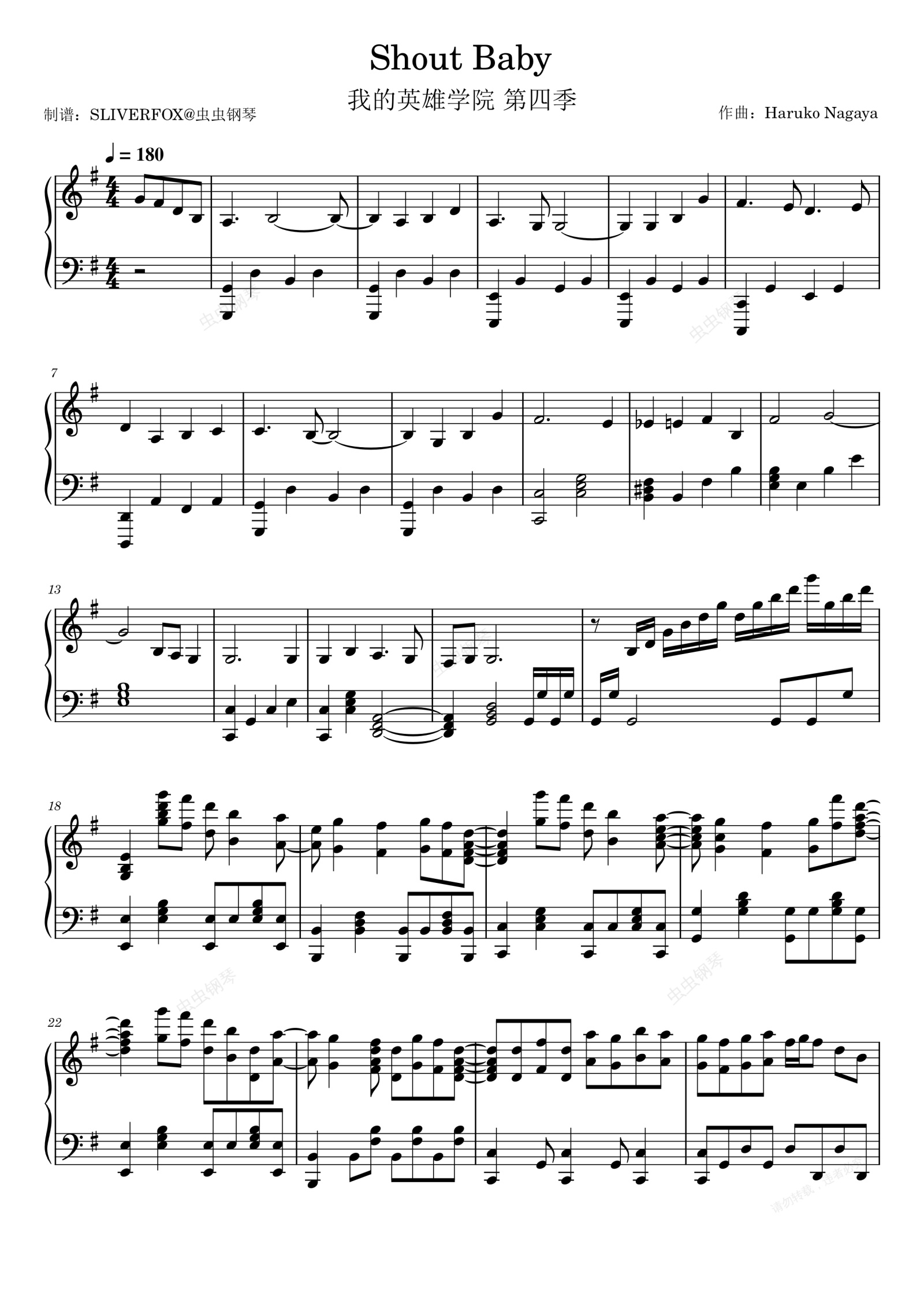 钢琴谱:《Shout Baby》我的英雄学院第四季片尾曲 完整独奏