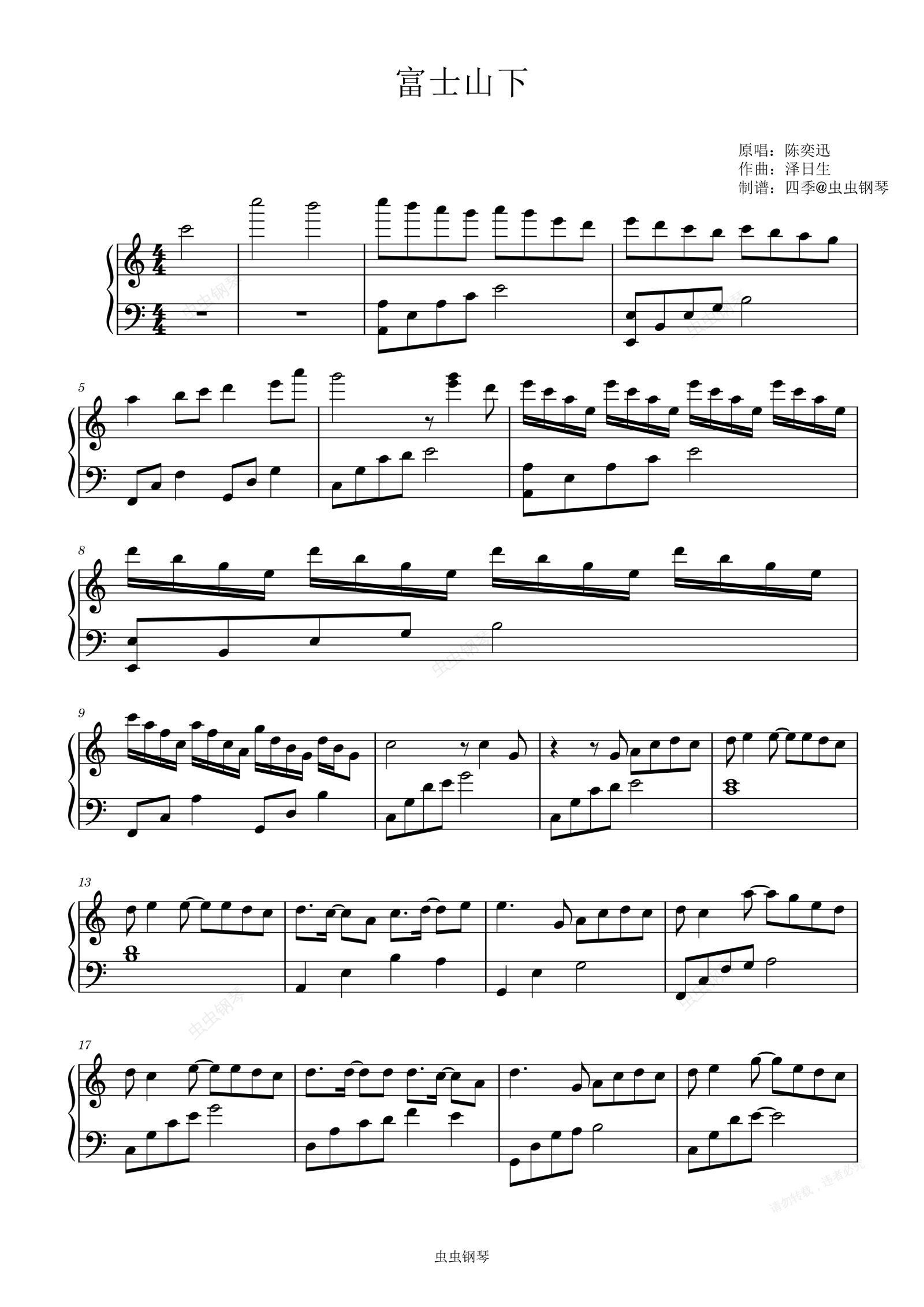 钢琴谱:富士山下