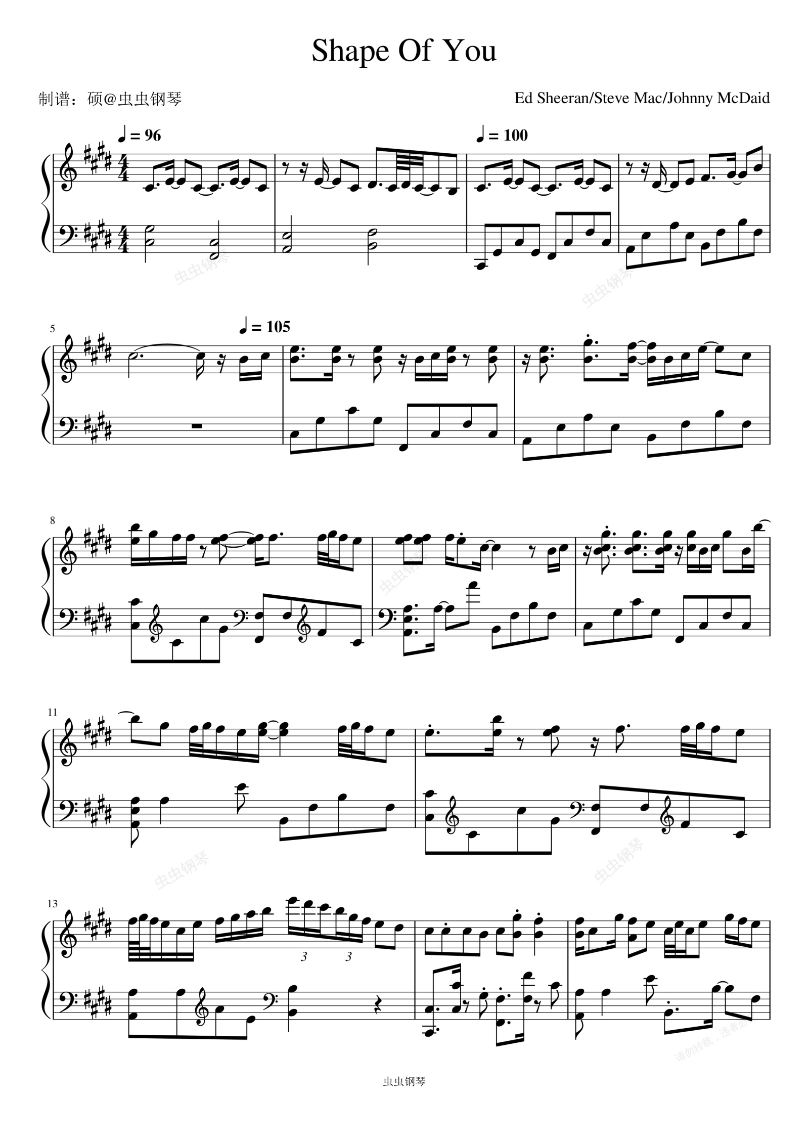 钢琴谱:Shape of You - Ed Sheeran (艾德·希兰)