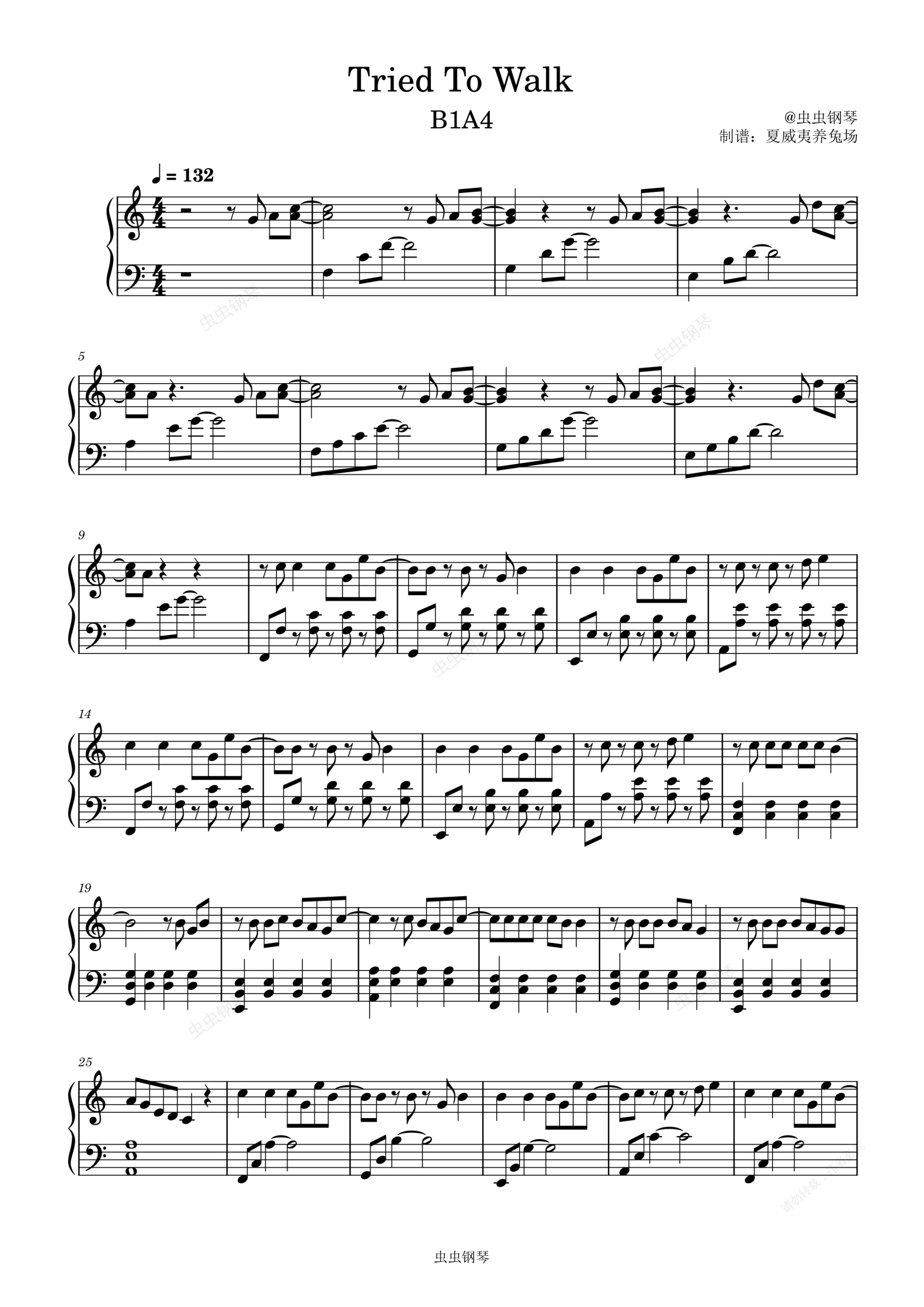 钢琴谱:Tried To Walk(走过)- B1A4