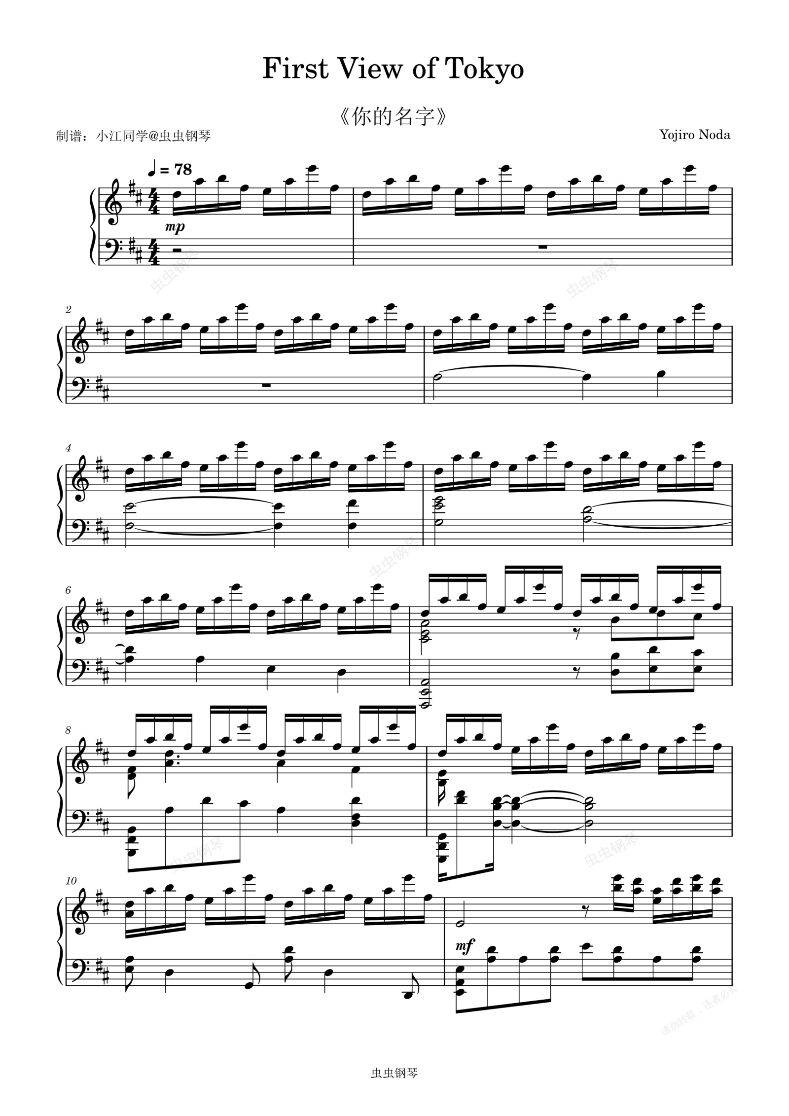 钢琴谱:はじめての、東京/First View of Tokyo《你的名字》