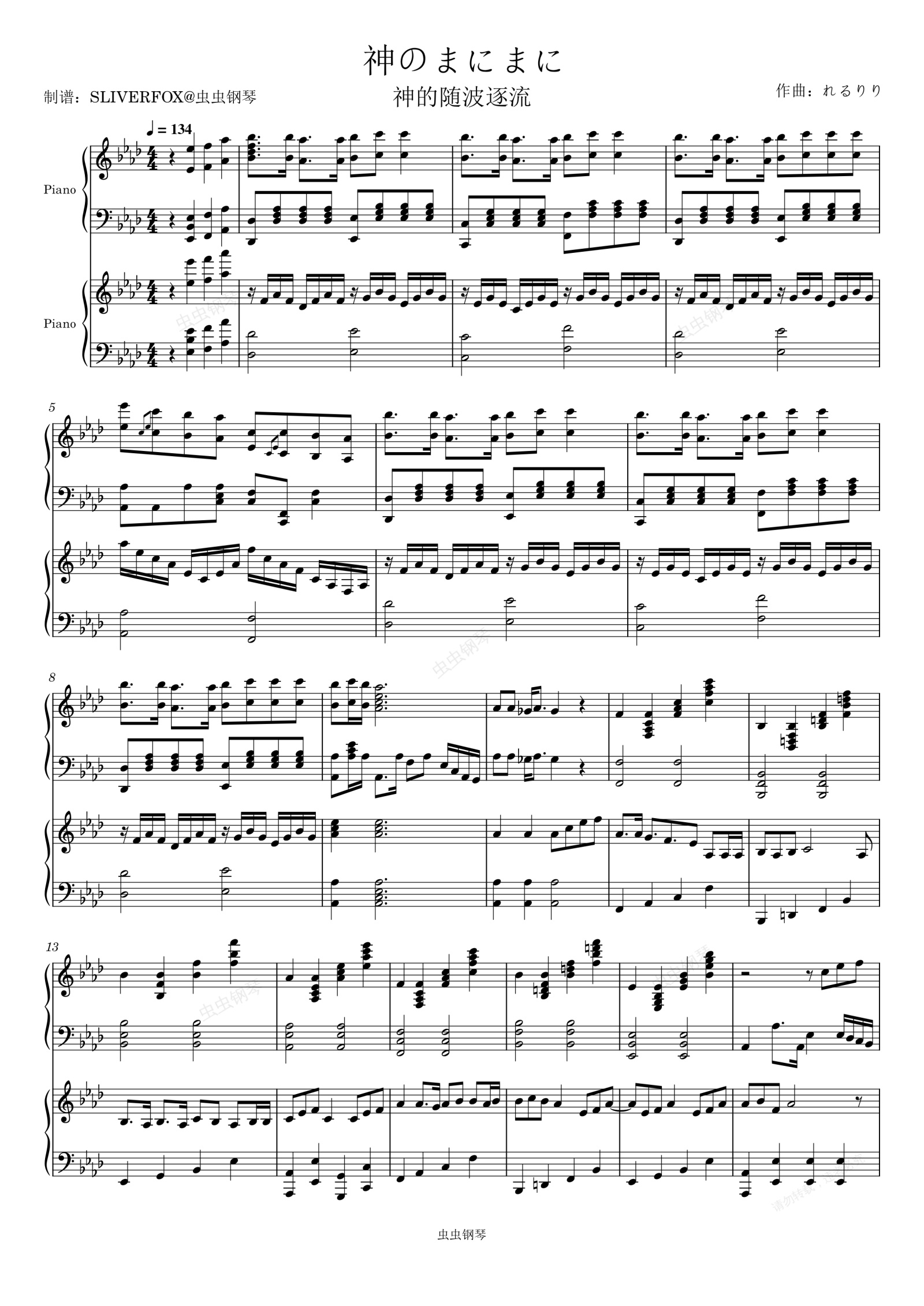 钢琴谱:《神的随波逐流》神のまにまに 抖音火爆背景音乐双钢琴完美版