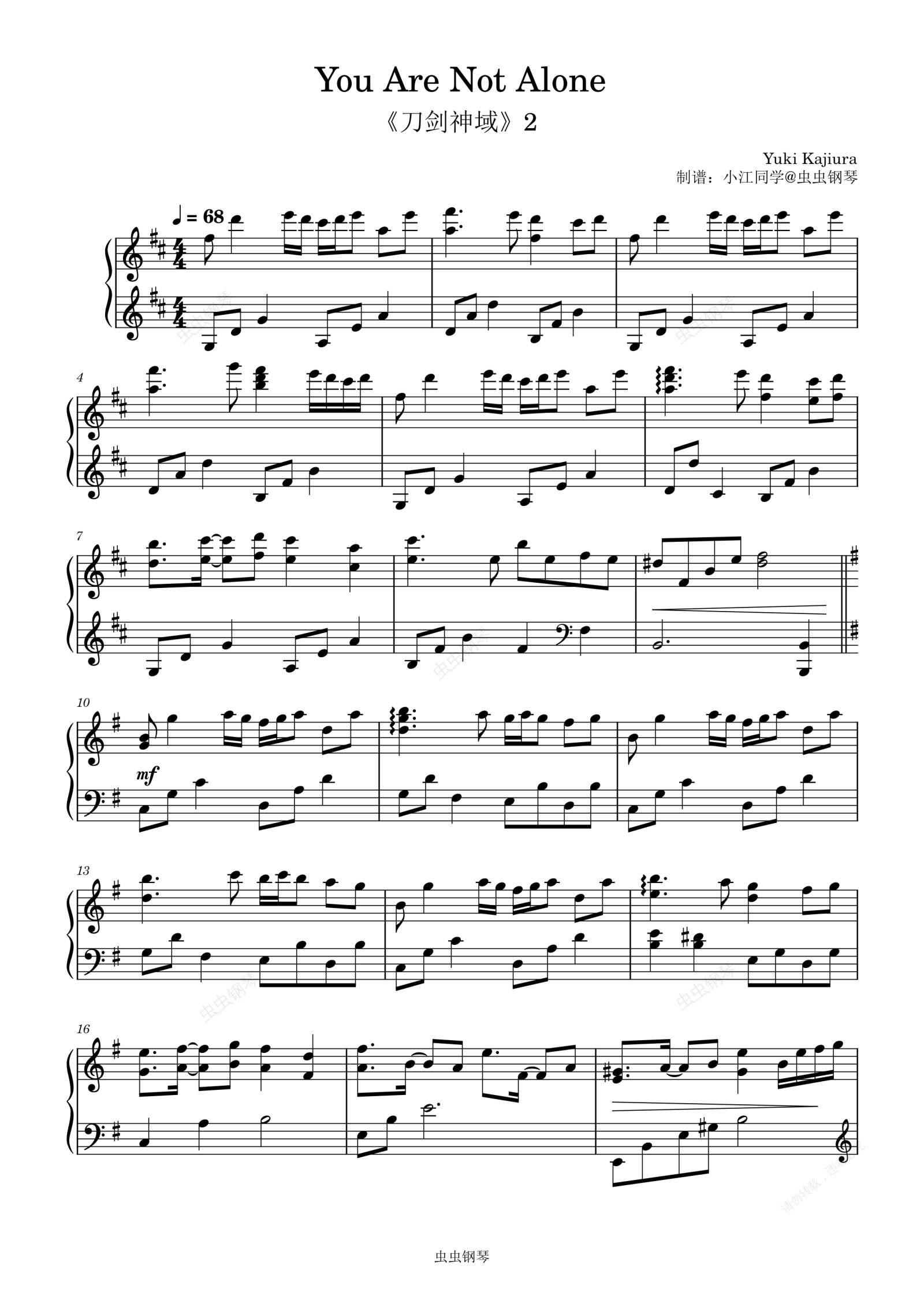 钢琴谱:You Are Not Alone《刀剑神域》2