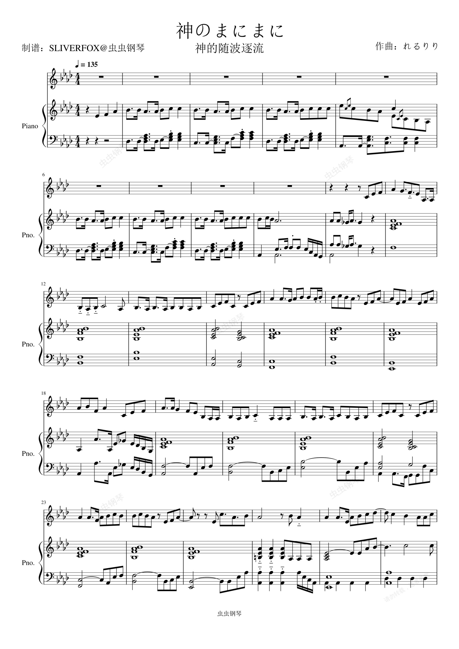 钢琴谱:《神的随波逐流》神のまにまに 抖音火爆背景音乐 弹唱