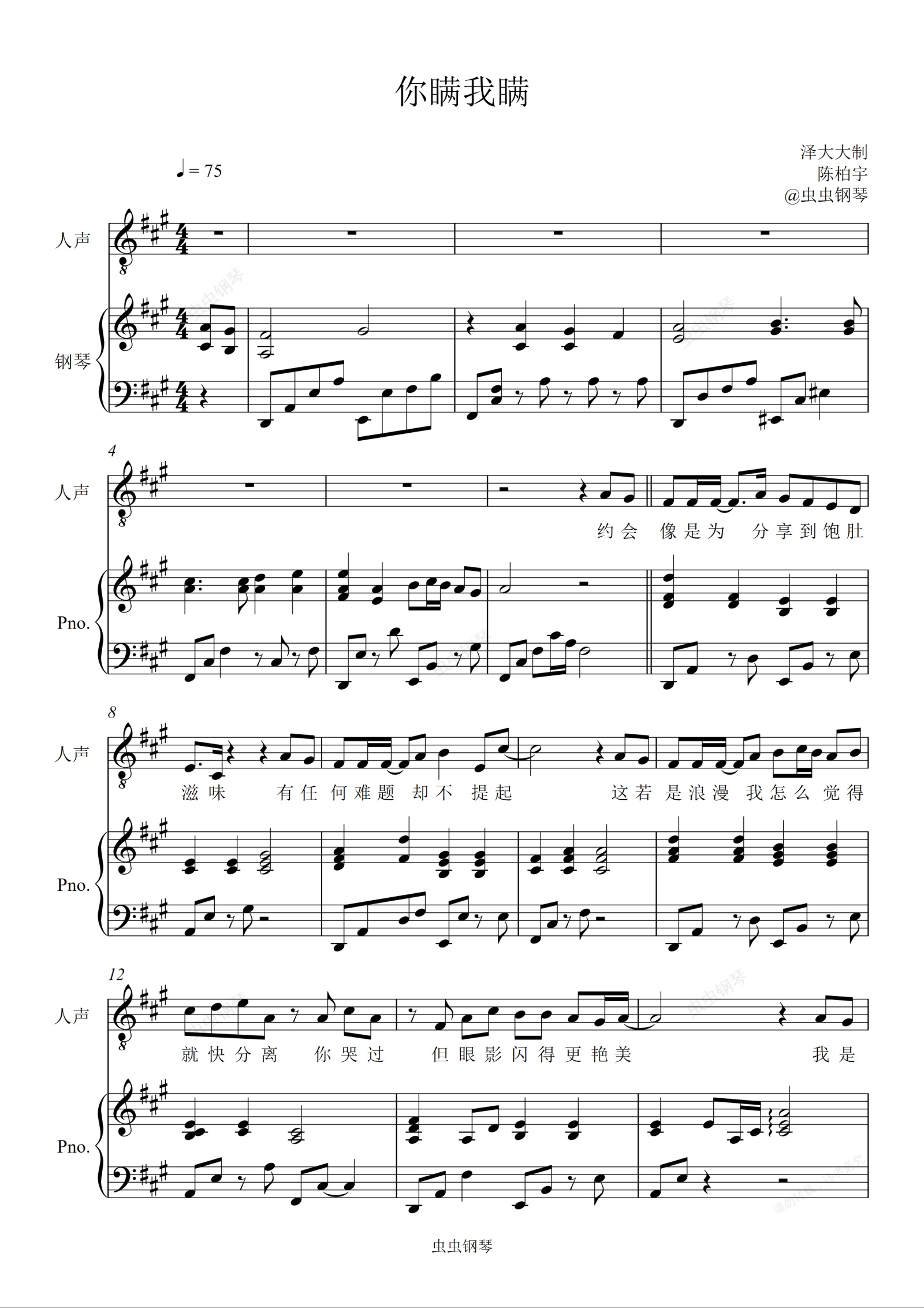 钢琴谱:你瞒我瞒【原版弹唱附词】泽大大 陈柏宇