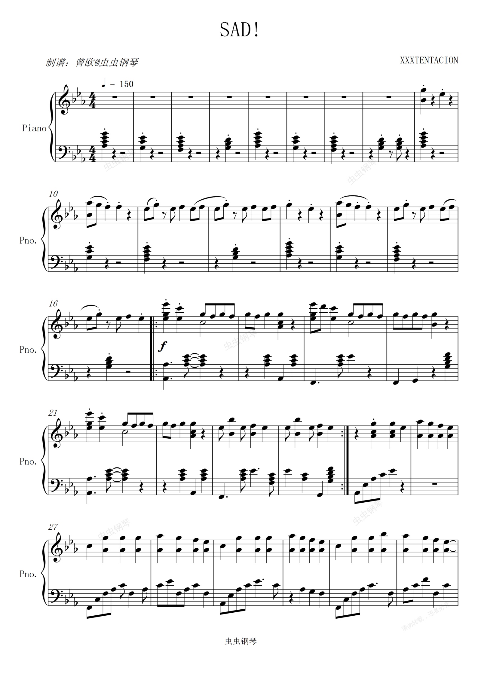 钢琴谱:SAD! - XXXTENTACION (免费原版)