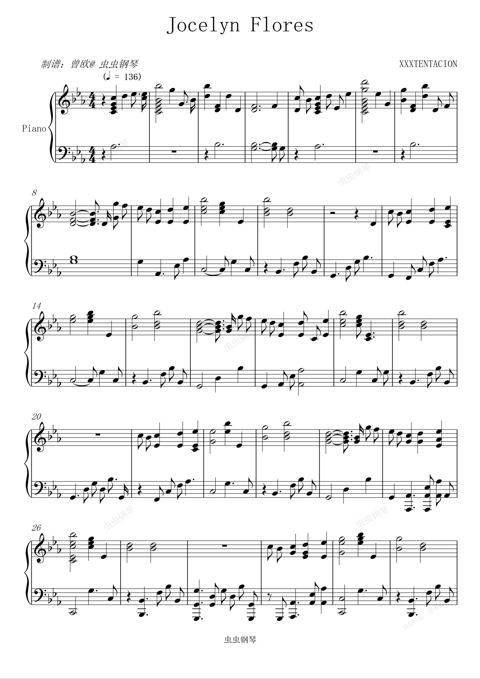 钢琴谱:Jocelyn Flores - XXXTENTACION (免费原版)