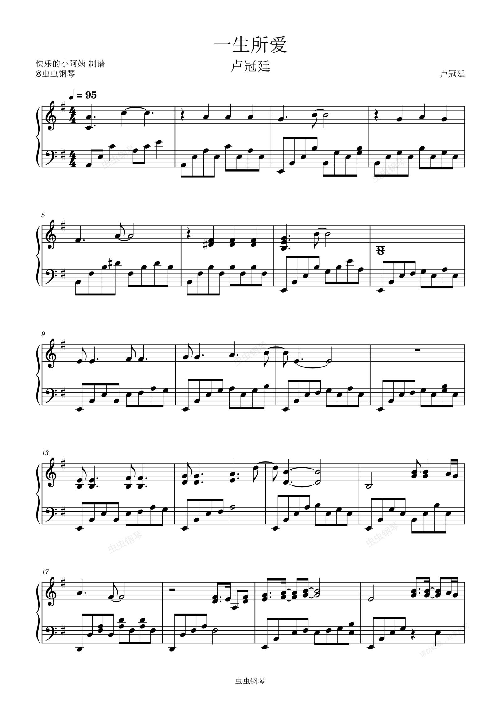钢琴谱:一生所爱-G调《大话西游之大圣娶亲》电影插曲