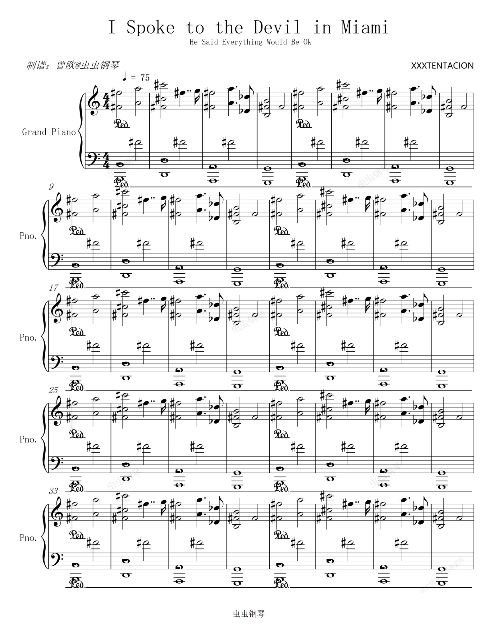钢琴谱:I spoke to the devil in miami, he said everything would be fine - XXXTENTACION (免费易弹)