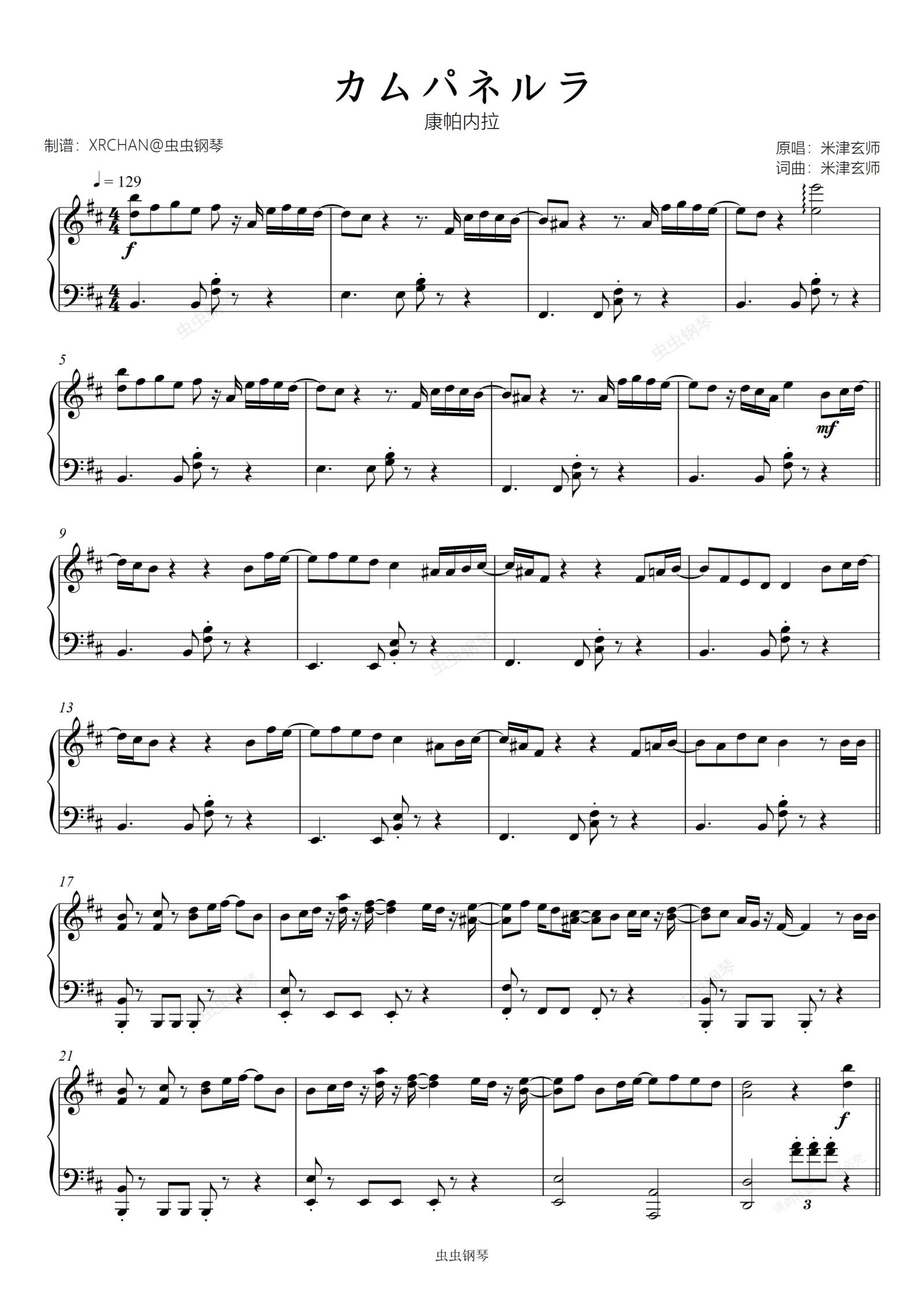 钢琴谱:カムパネルラ(康帕内拉) 米津玄师 初级版