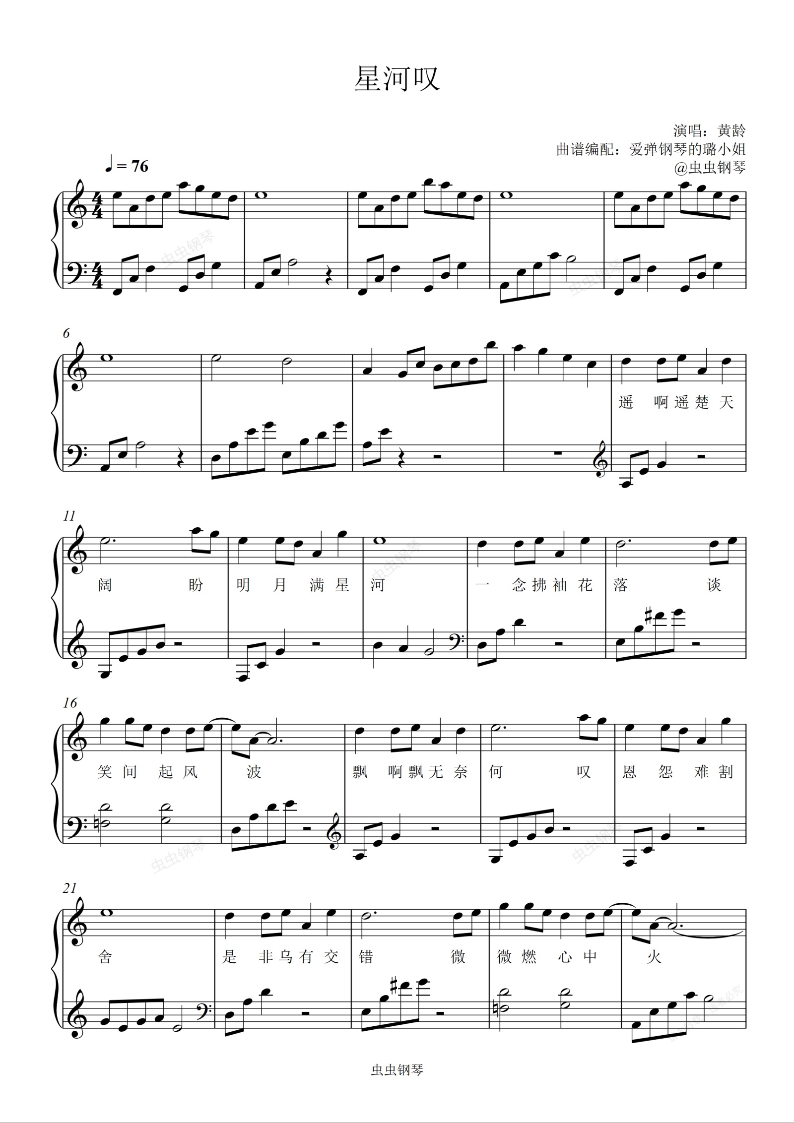 钢琴谱:星河叹 - 《星汉灿烂》 - C调简单版 - 附歌词