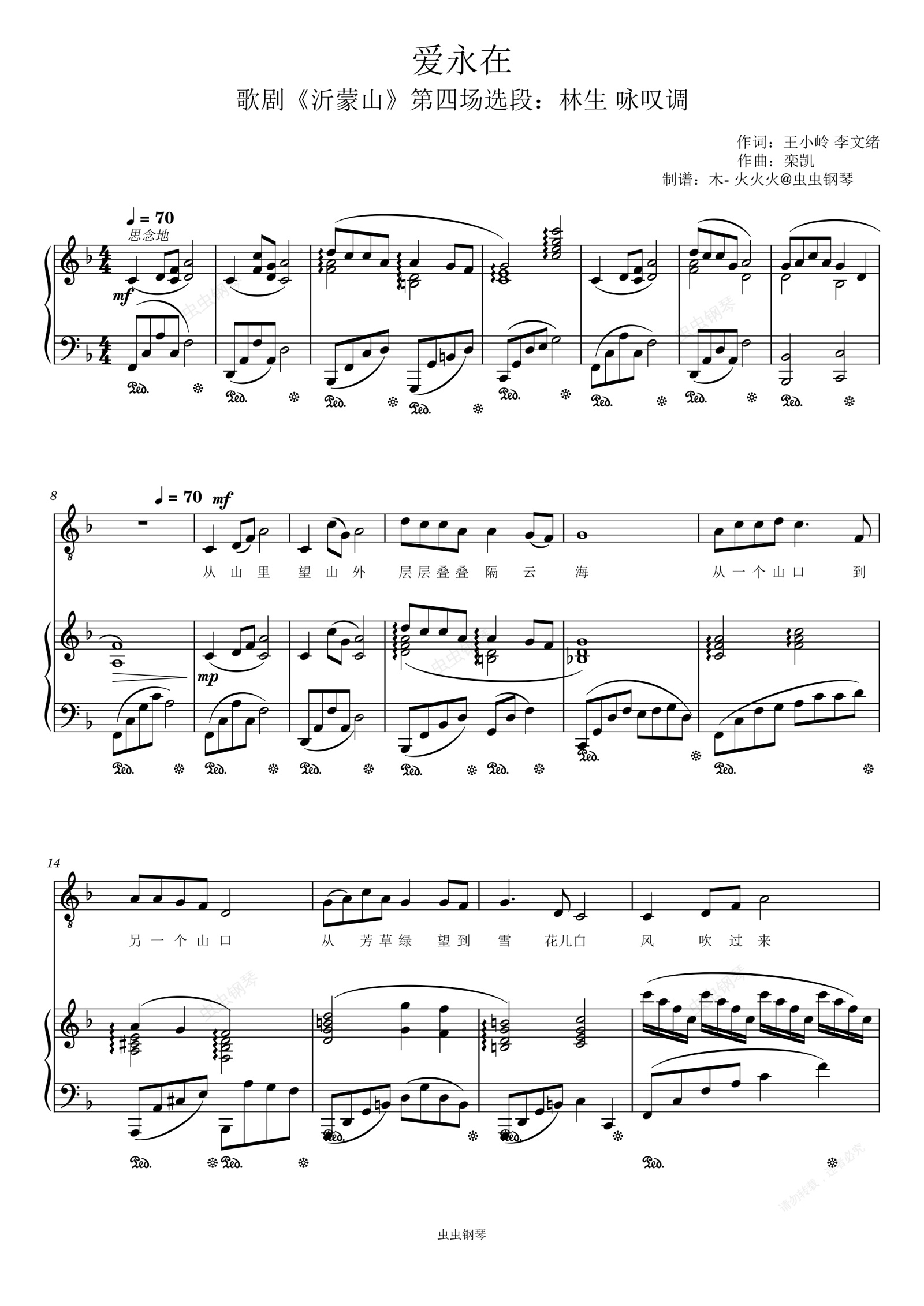 钢琴谱:艺考正谱:《爱永在》男高音(歌剧《沂蒙山》选曲)F调