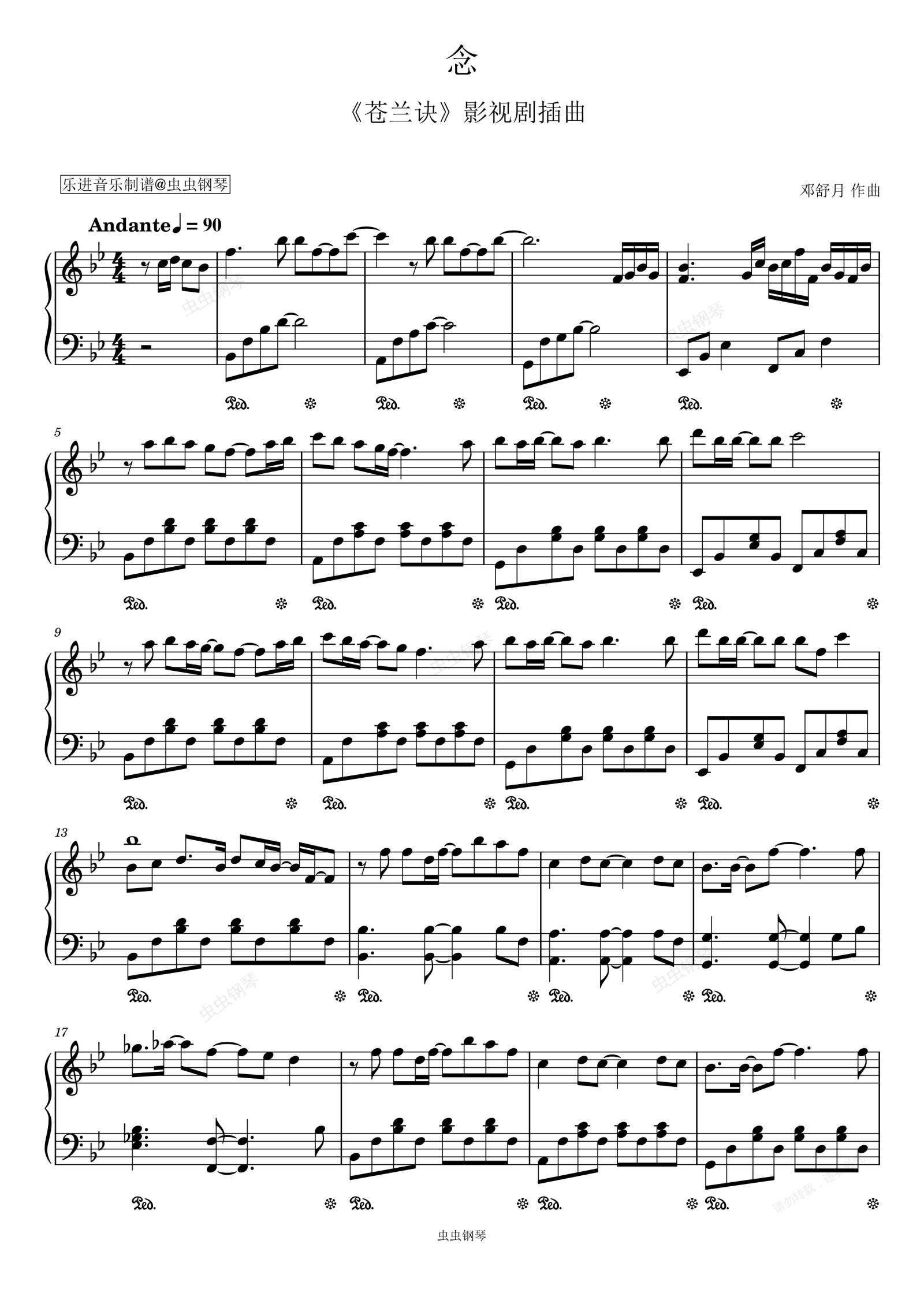 钢琴谱:《念》 (《苍兰诀》影视剧插曲)