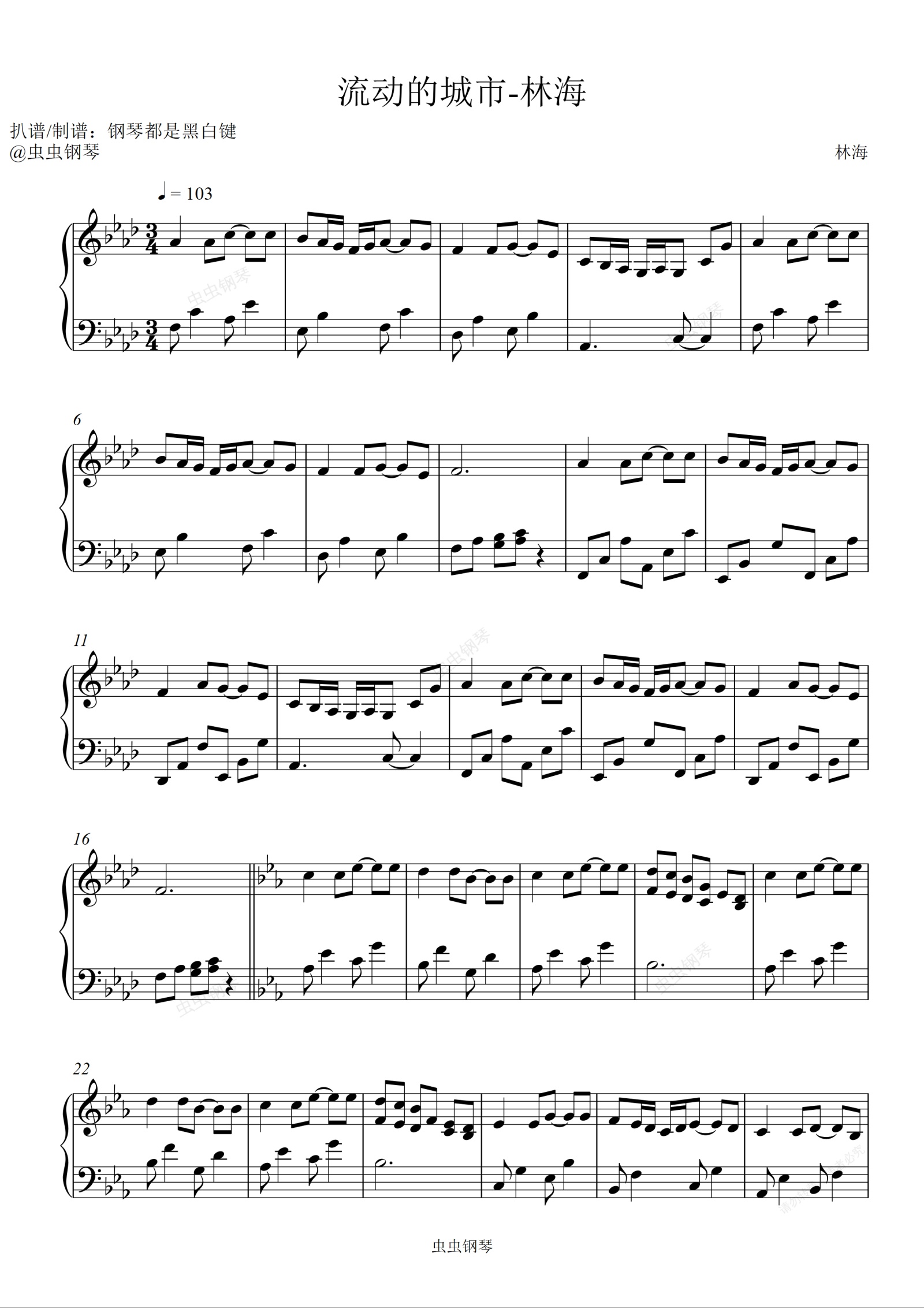 钢琴谱:流动的城市-林海【安静舒适 / 纯钢琴】