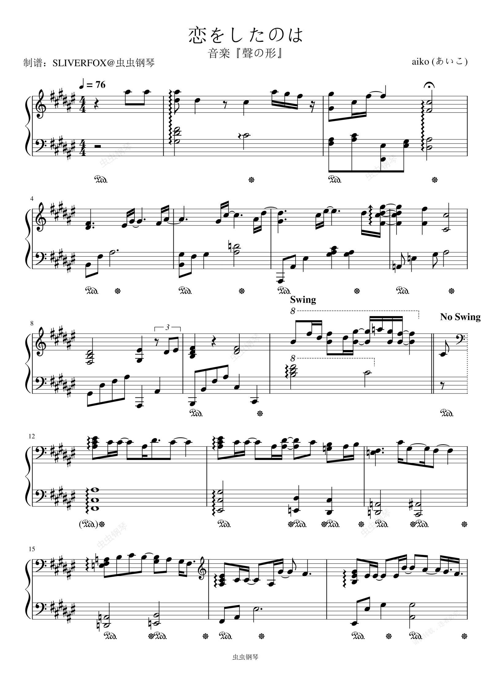 钢琴谱:《恋をしたのは》『声之形』主题曲 原调独奏
