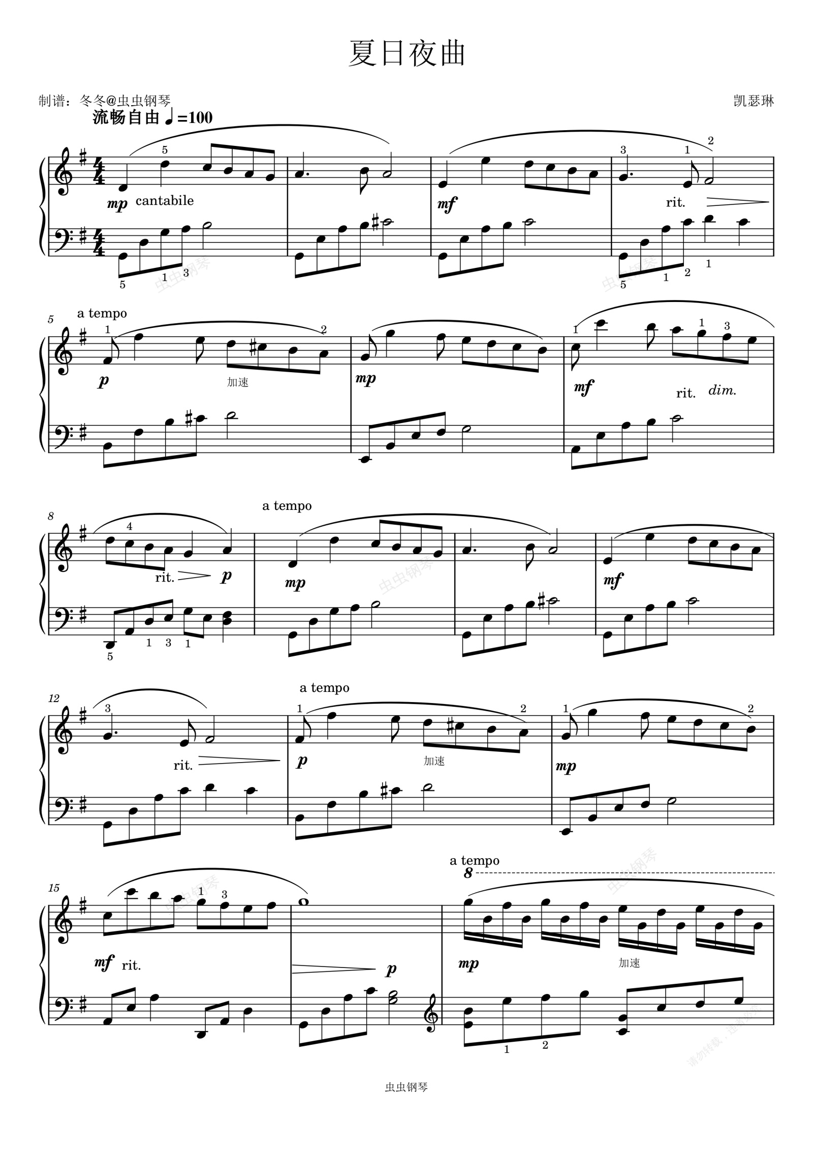 钢琴谱:夏日夜曲