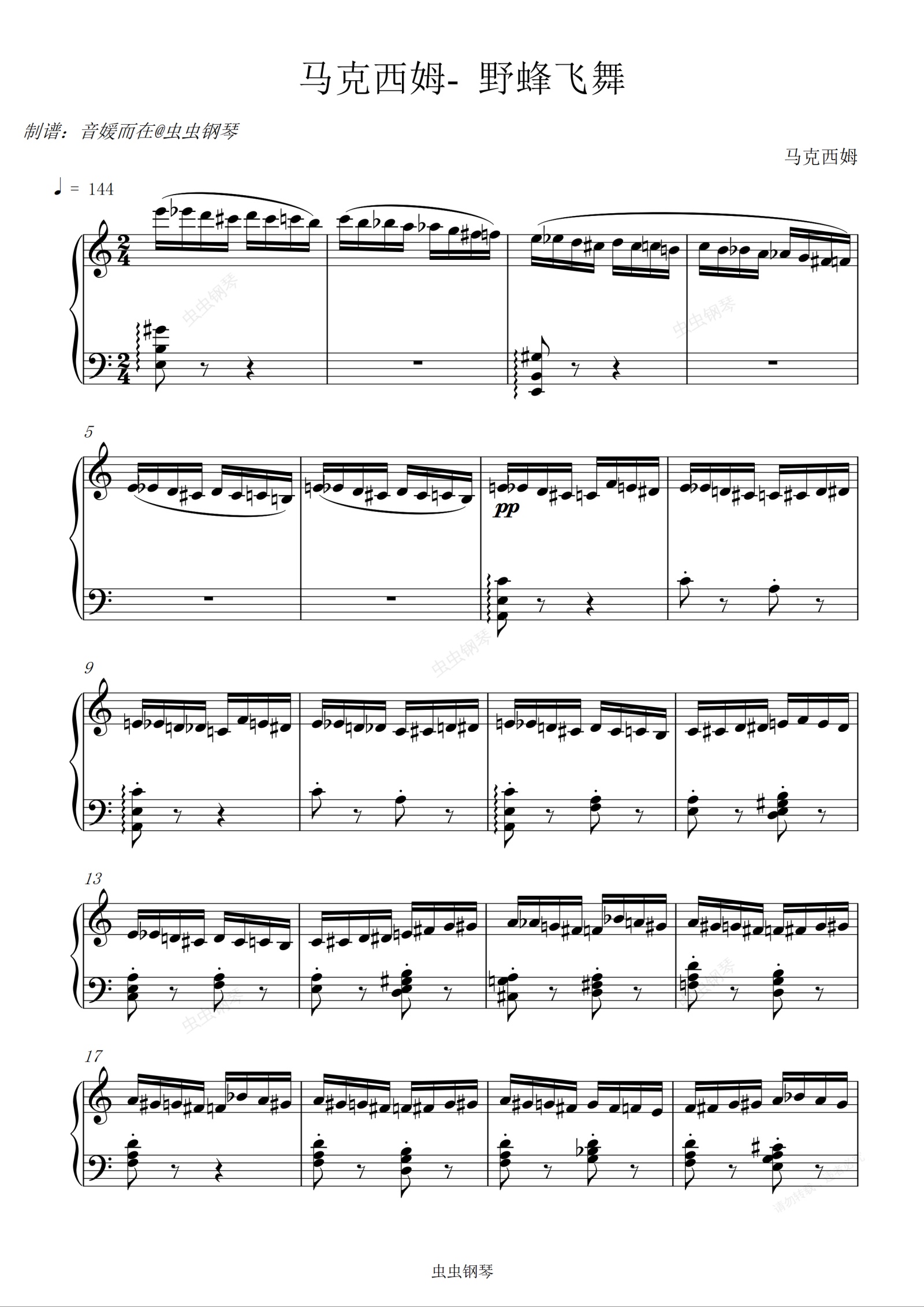 钢琴谱:《野蜂飞舞》 世界最快钢琴曲之一,马克西姆的成名曲