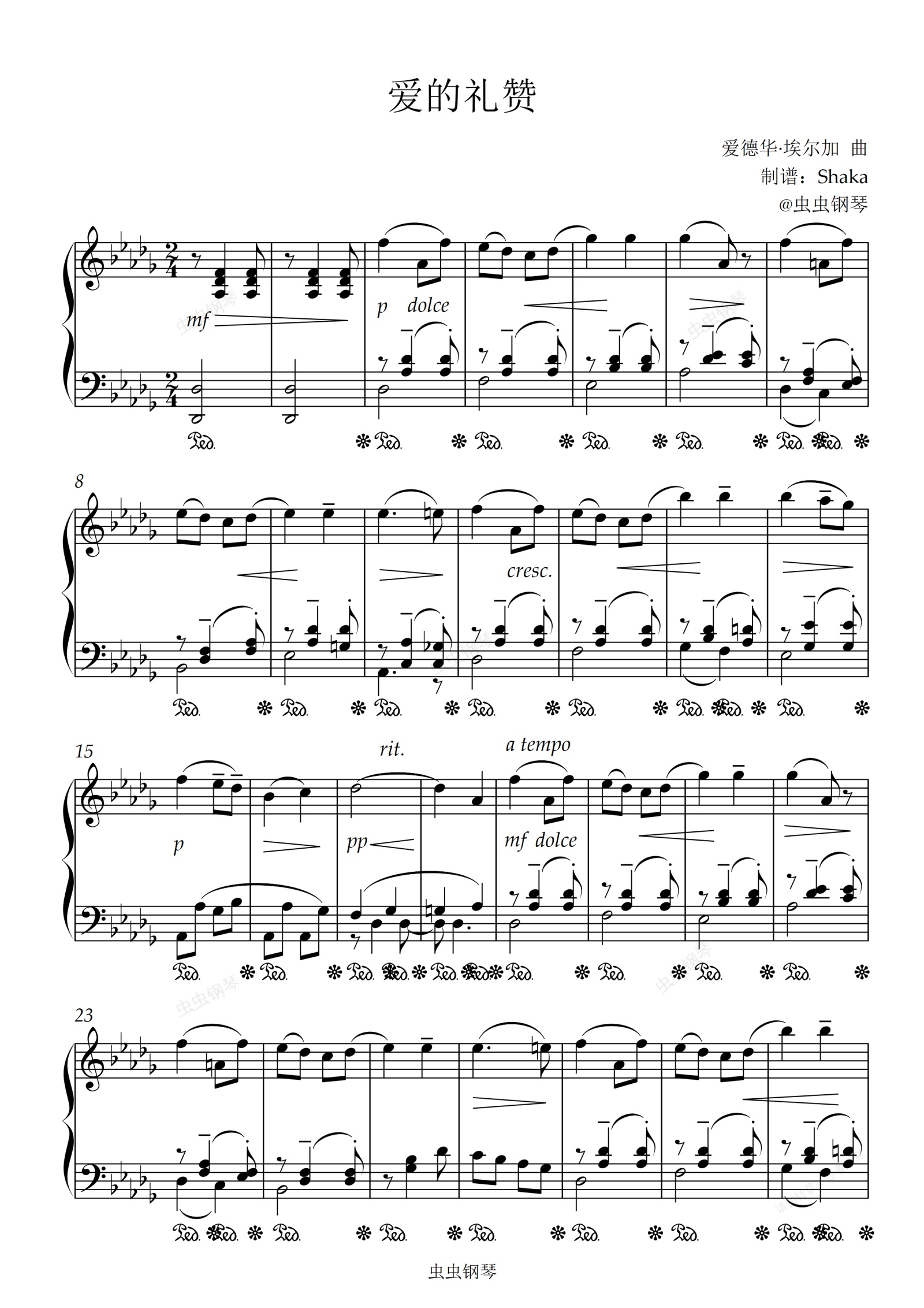 钢琴谱:爱的礼赞 降D调抒情版 上海音乐学院4级考级曲目