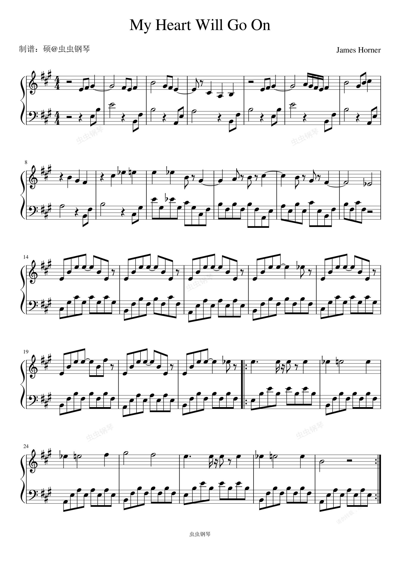 钢琴谱:My Heart Will Go On (Love Theme from "Titanic") - Céline Dion (席琳·迪翁)/James