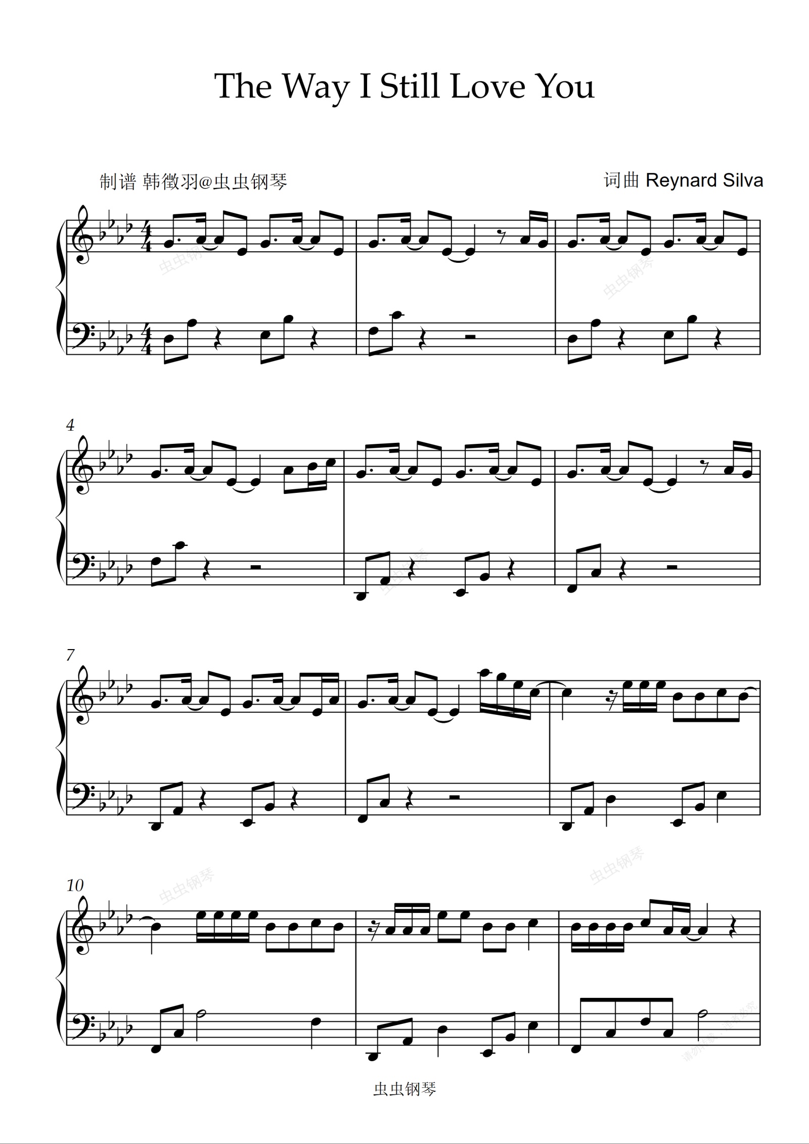 钢琴谱:原调降A The Way I still Love You  好听易弹