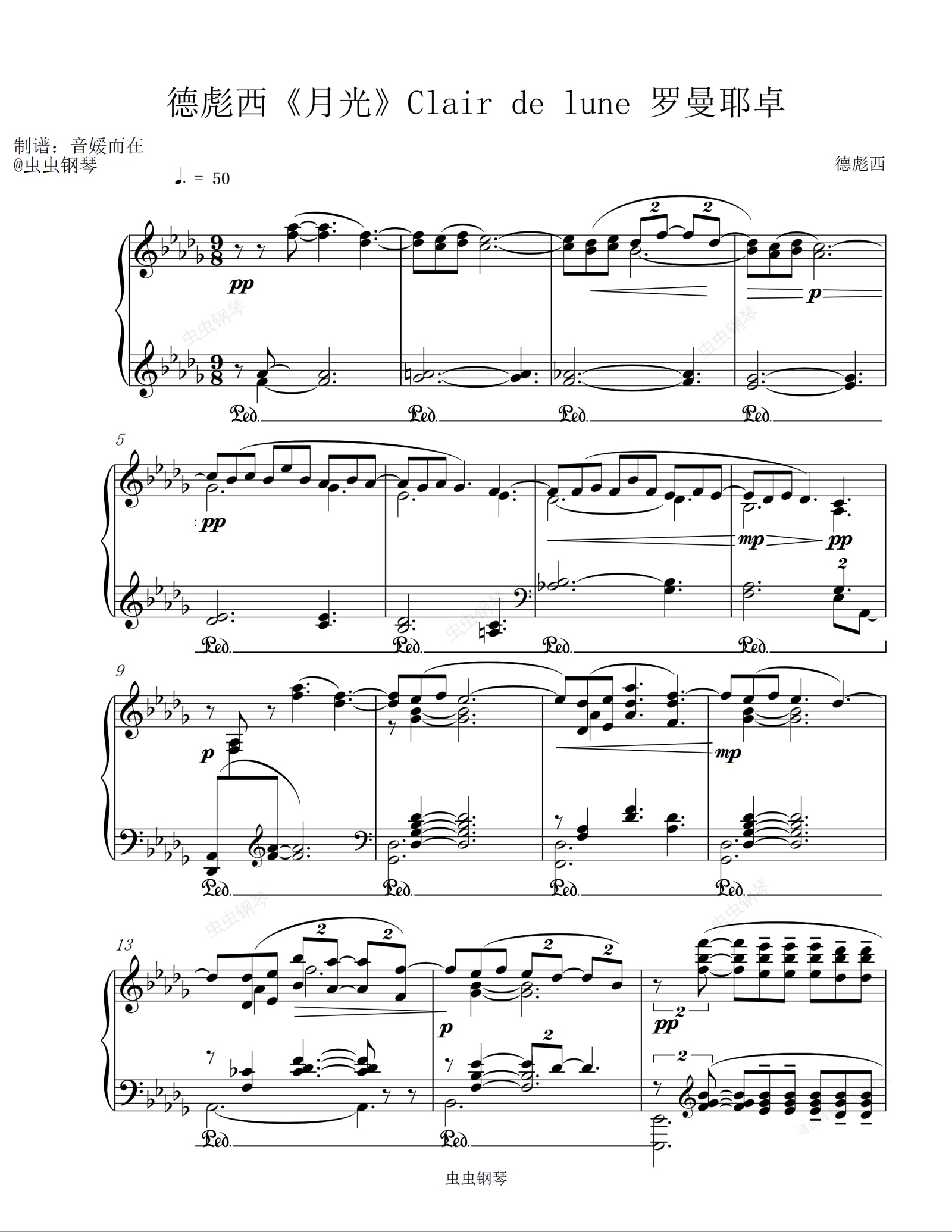 钢琴谱:德彪西《月光》Clair de lune 罗曼耶卓
