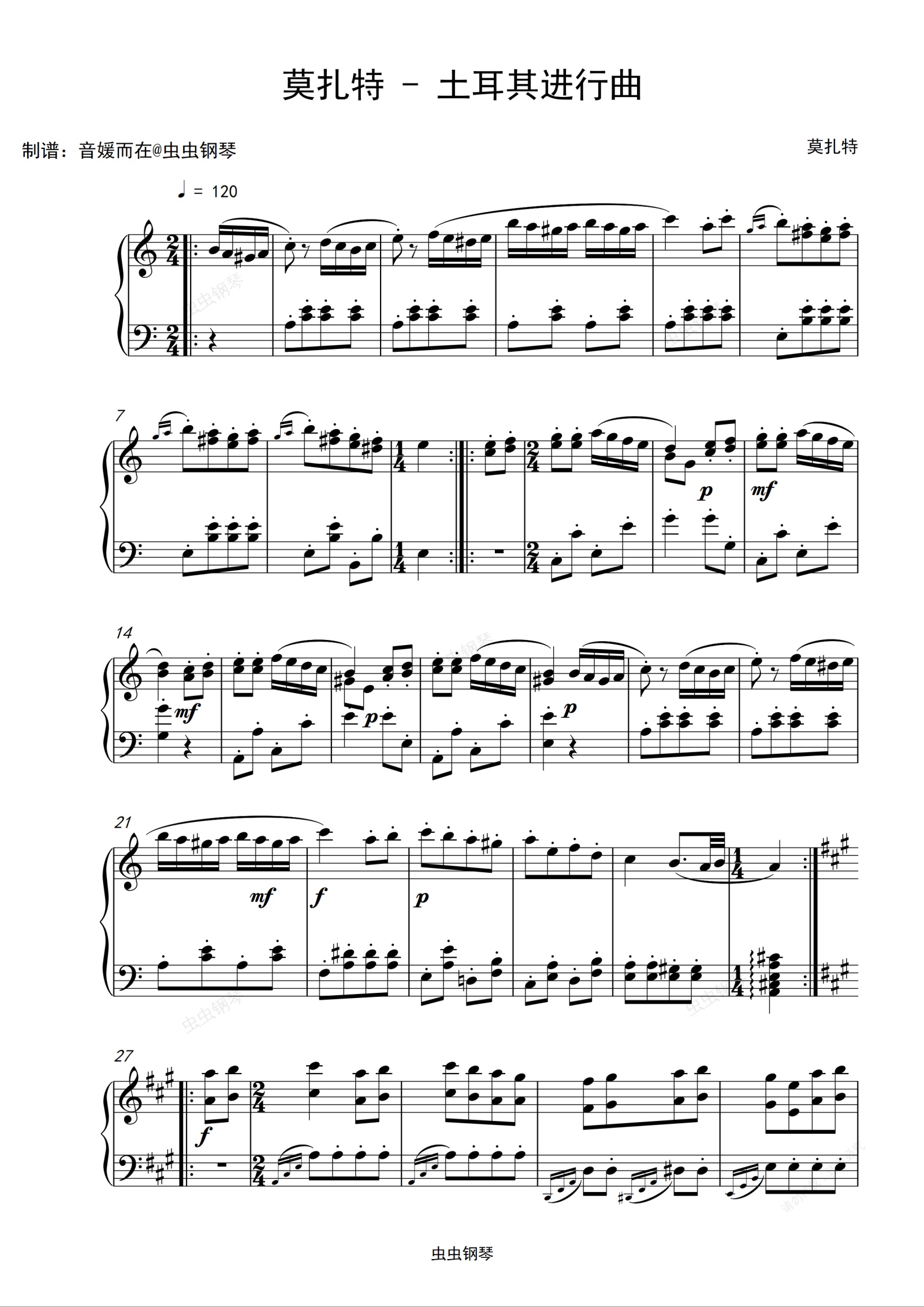 钢琴谱:莫扎特经典曲目《土耳其进行曲》