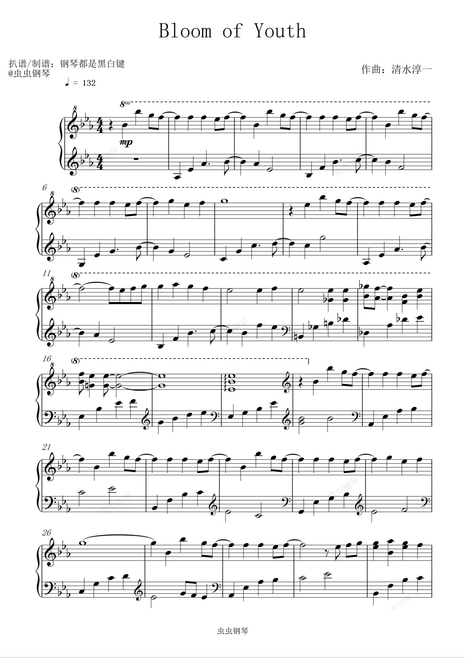 钢琴谱:「前奏直接秒杀的纯音乐♪♬」bloom of youth--key