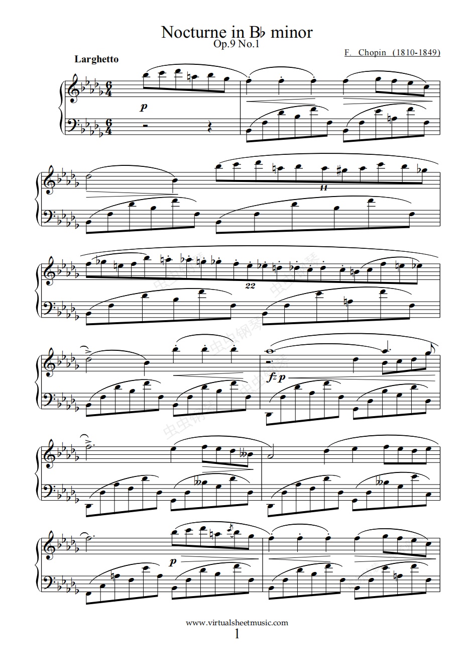 钢琴谱:Nocturne Op.9 No.1(降b小调夜曲)