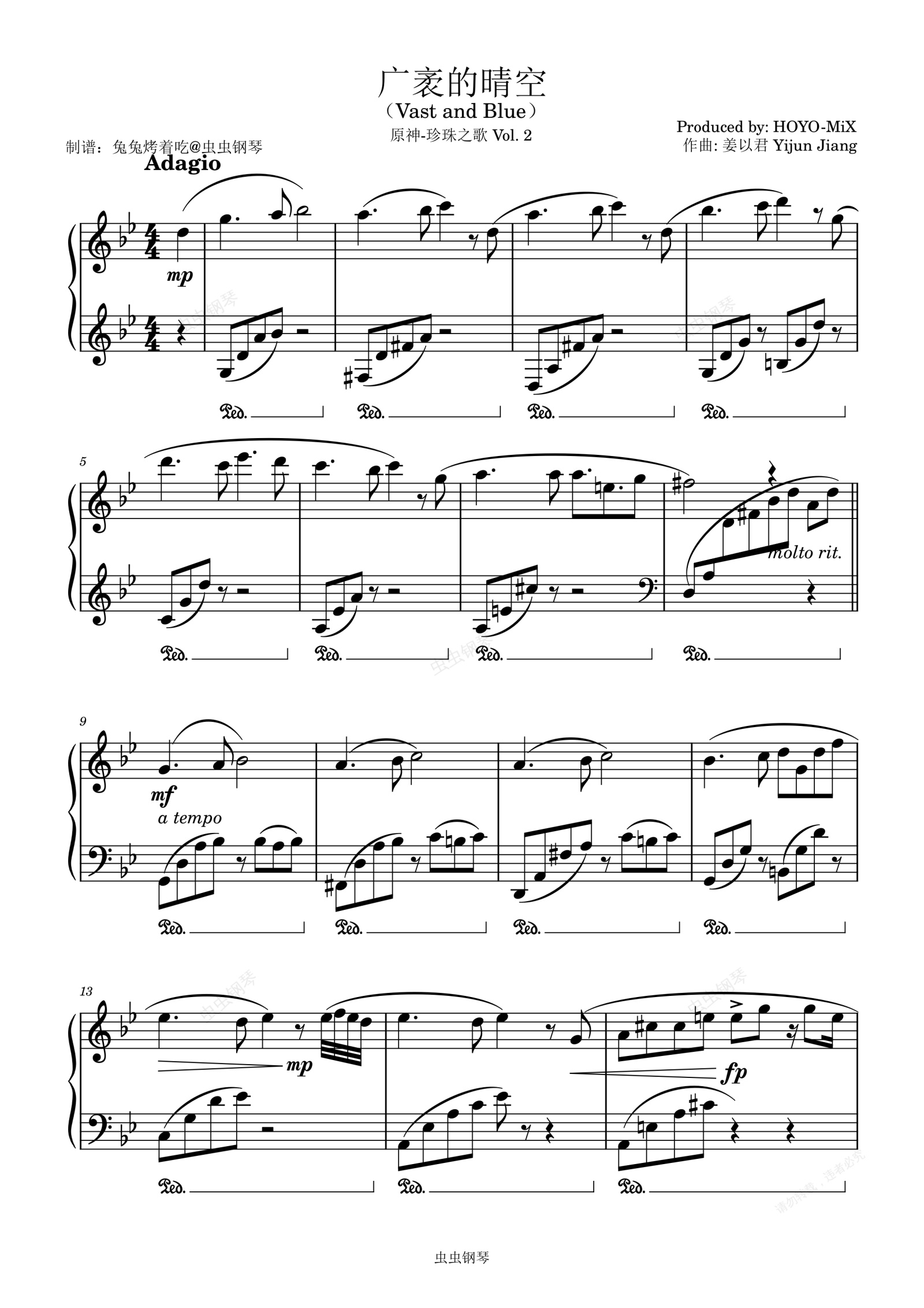 钢琴谱:《广袤的晴空》原神-珍珠之歌