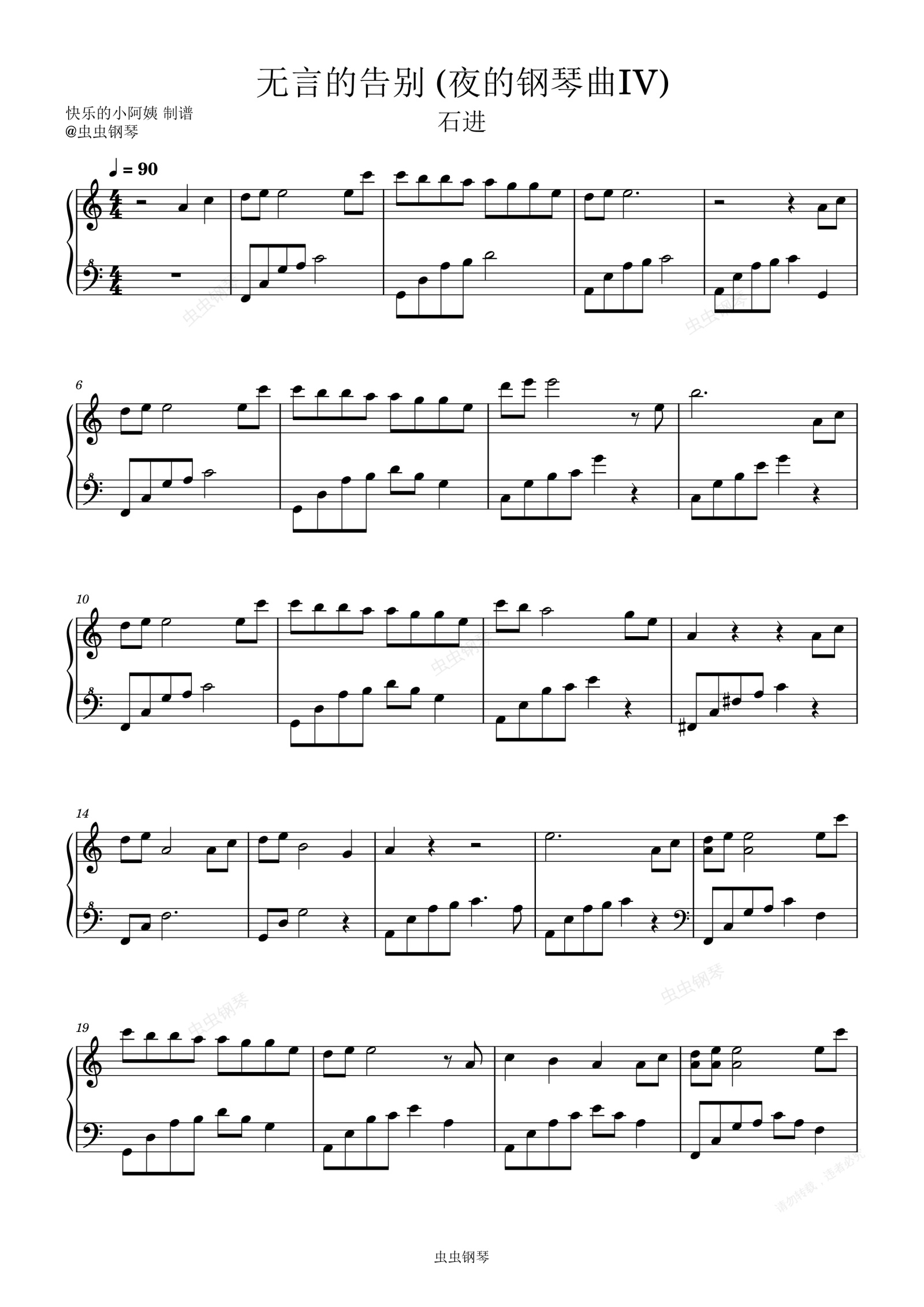 钢琴谱:无言的告别 -C调(夜的钢琴曲IV)