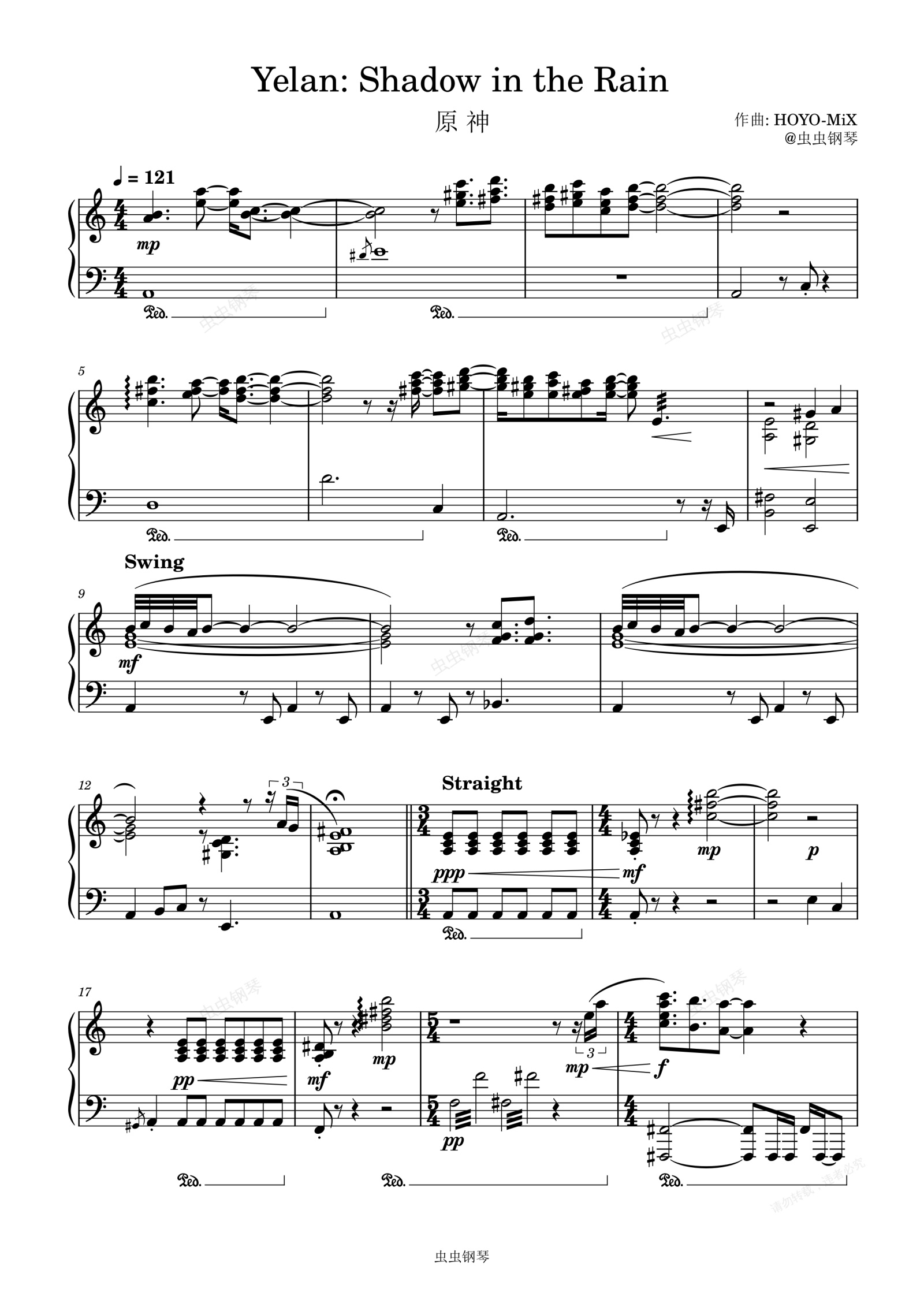 钢琴谱:《Yelan: Shadow in the Rain》原神插曲