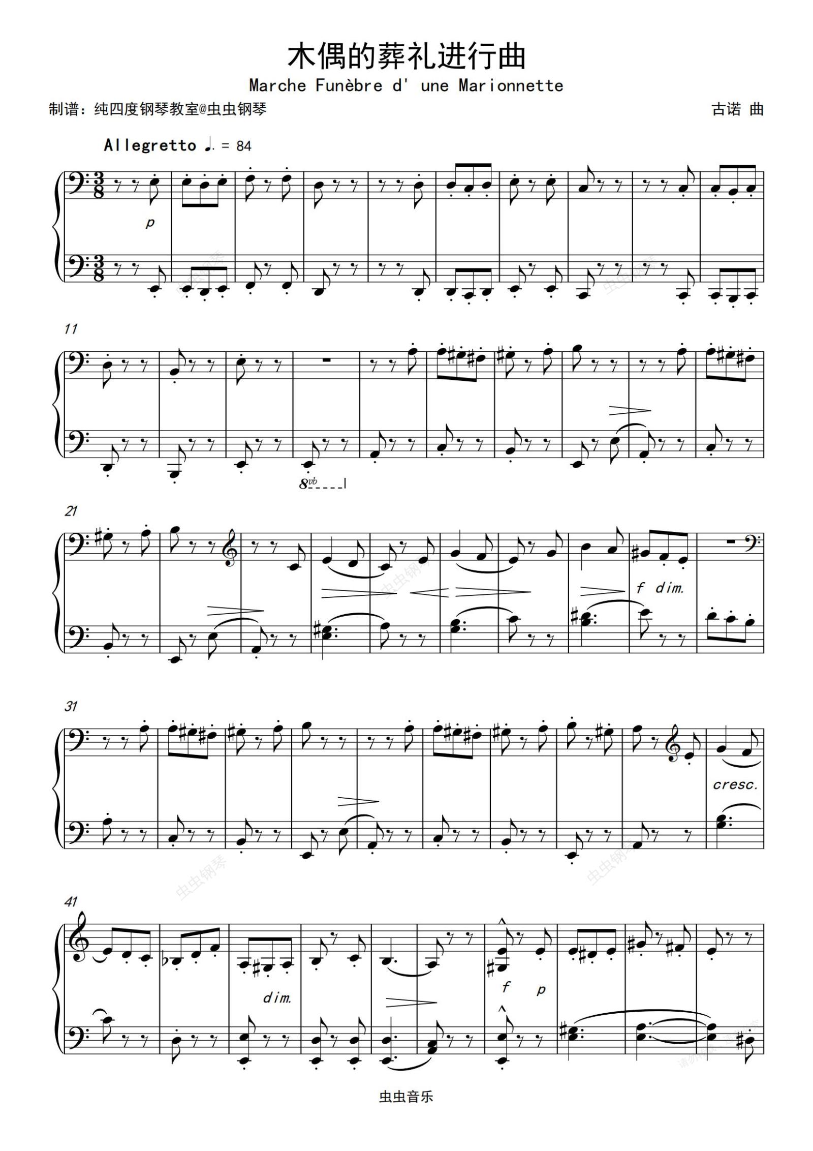 钢琴谱:木偶的葬礼进行曲(Marche Funèbre d' une Marionnette)